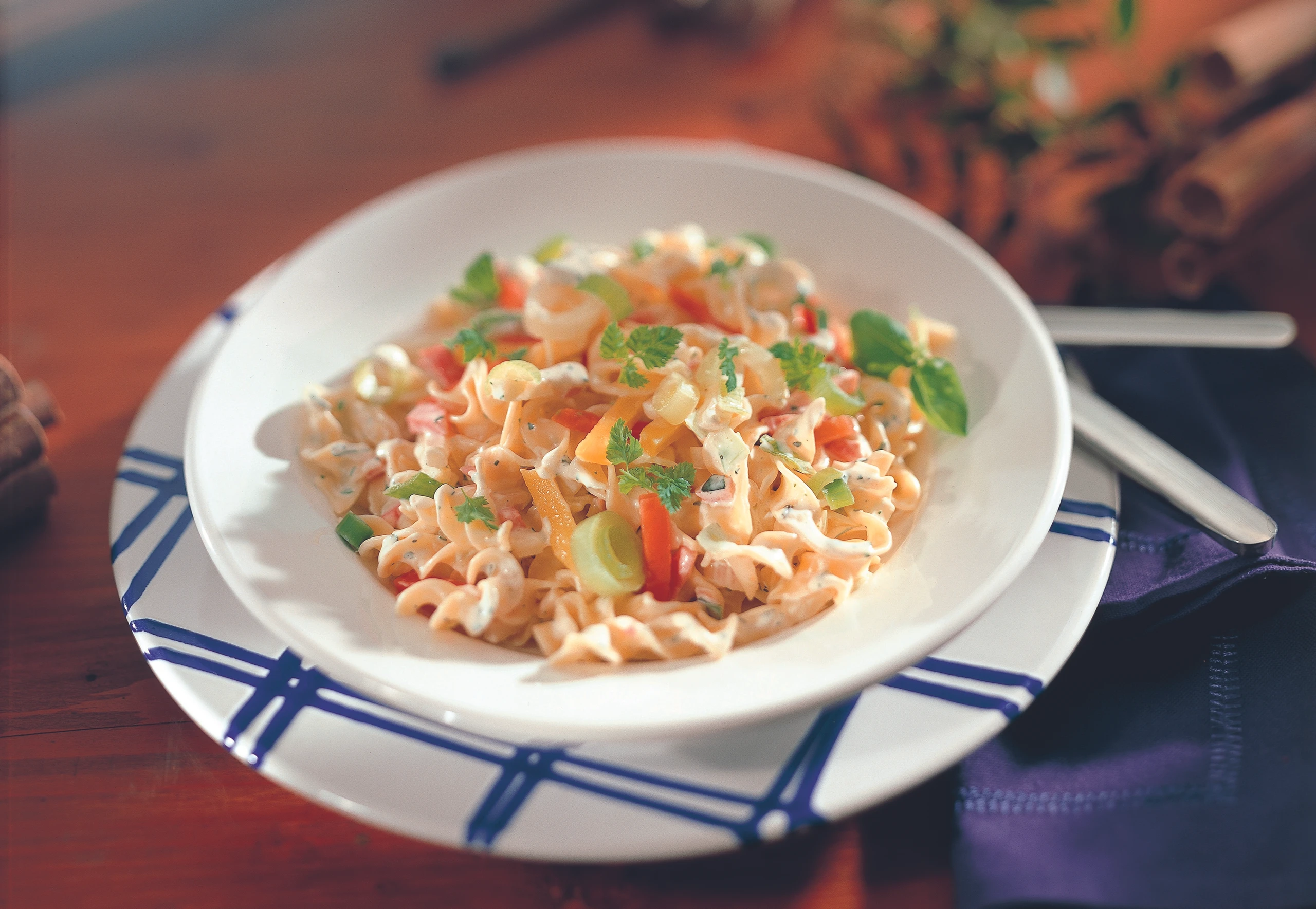 Nudel-Gemüse-Salat mit Kräuter-Rahmdressing