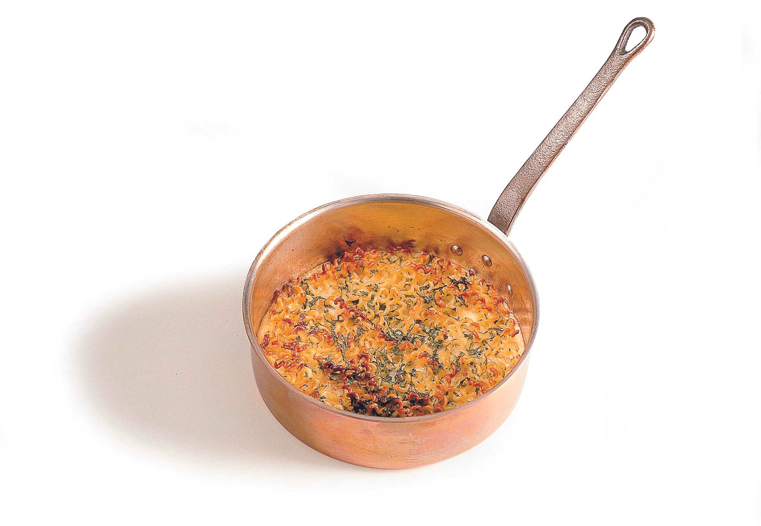 Nudeln in Salzwasser bissfest kochen, abseihen, kalt abschrecken und gut abtropfen lassen. Backrohr auf 200 °C vorheizen. Eine Auflaufform dünn mit Butter ausstreichen. Eier mit Sauerrahm, Obers, Salz und Pfeffer verquirlen. Kräuter und Nudeln untermischen. Masse in der Form verteilen und im Rohr (mittlere Schiene / Gitterrost) ca. 15 Minuten backen.