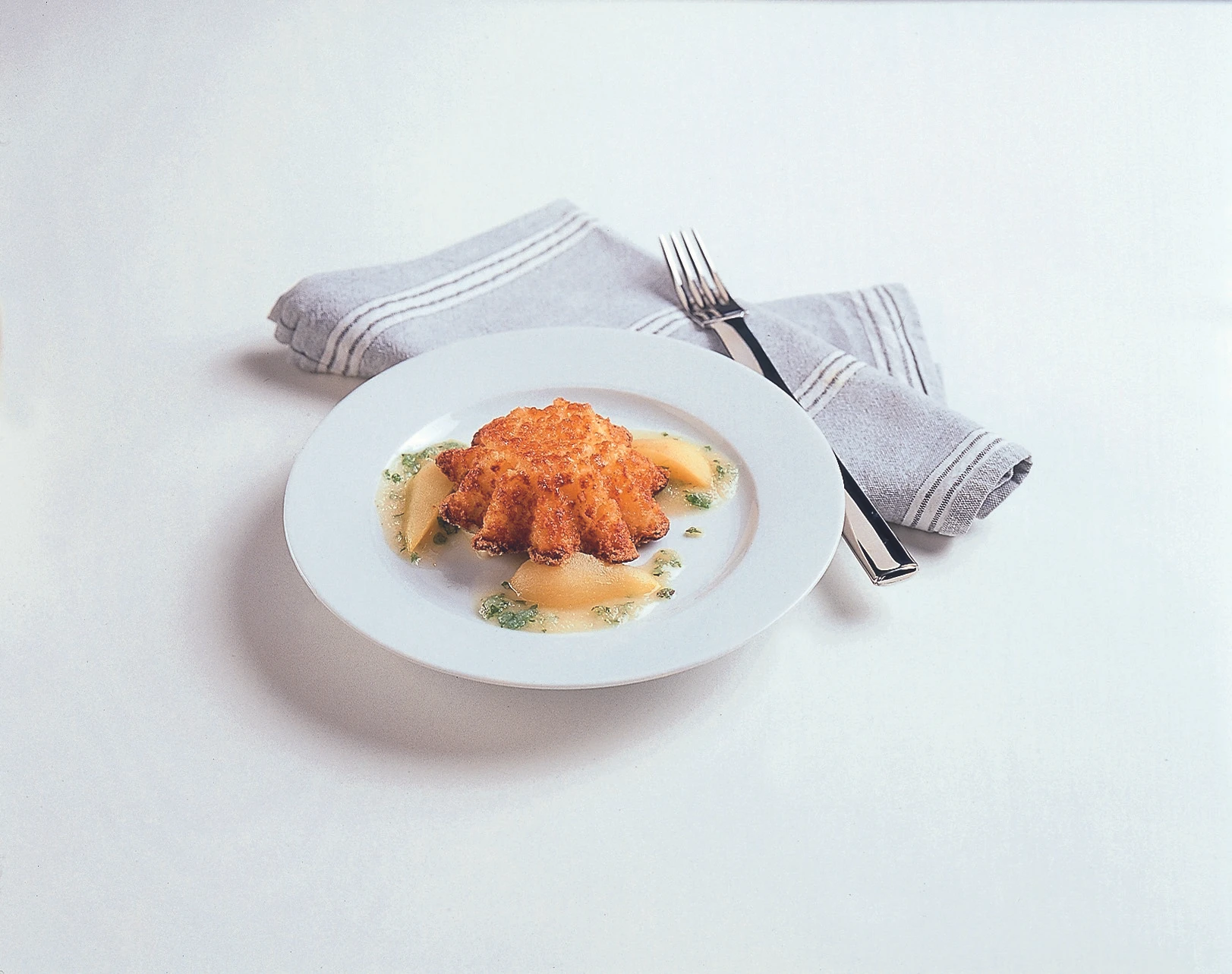 Masse in den Förmchen verteilen. Förmchen in eine Metallform mit dünnem Boden stellen, so viel kochendes Wasser zugießen, dass sie zur Hälfte im Wasserbad stehen. Aufläufe im Rohr (untere Schiene / Gitterrost) ca. 45 Minuten backen. Als Beilage passt Birnenkompott mit fein geschnittener Melisse verfeinert.