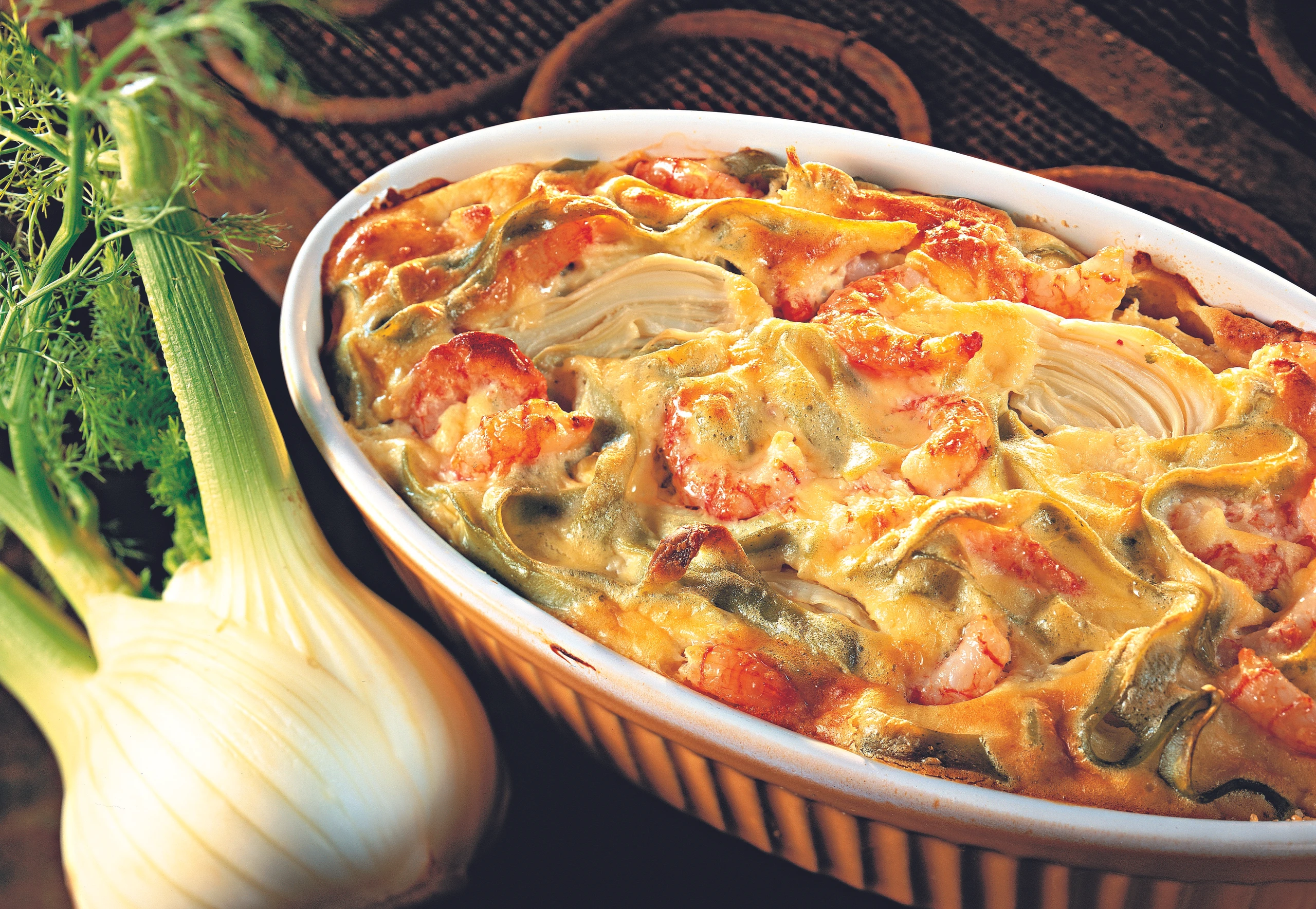 Nudelauflauf mit Fenchel und Shrimps