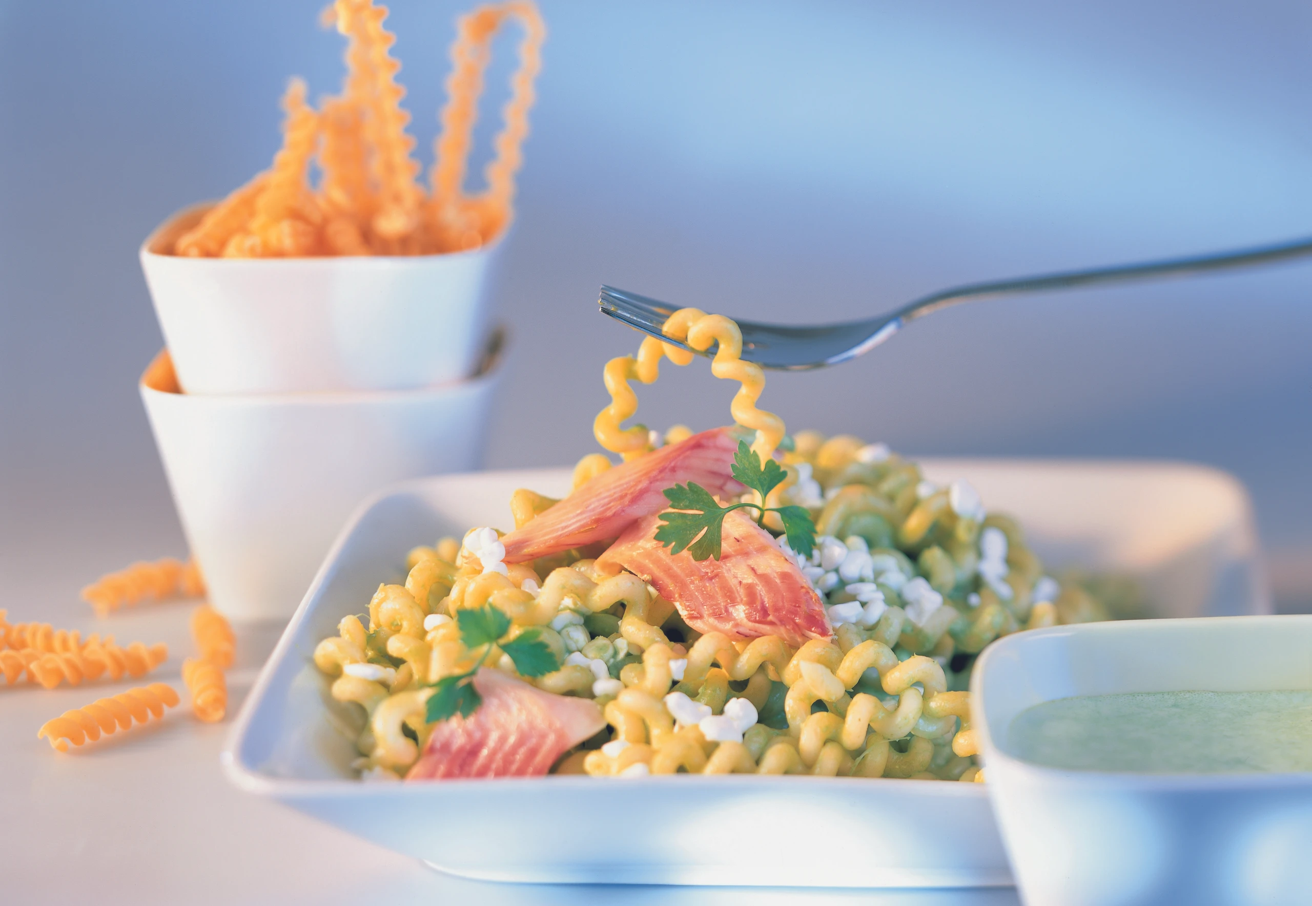Nudeln mit Petersil-Obersauce und Räucherforelle