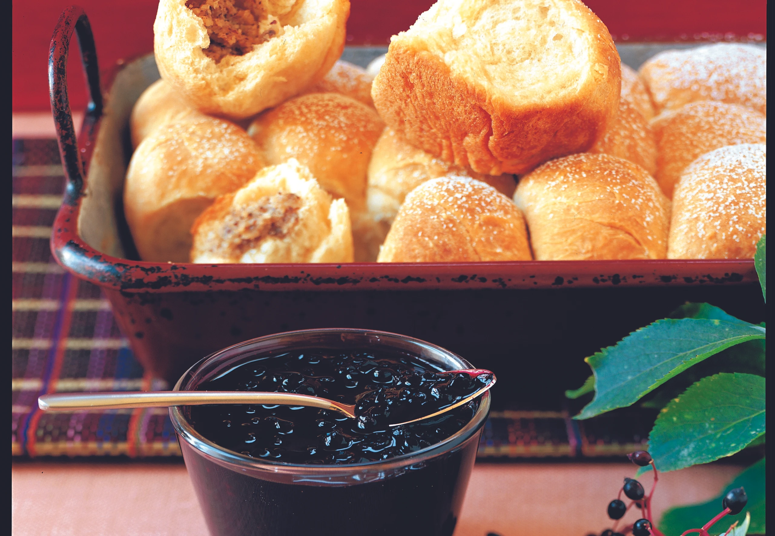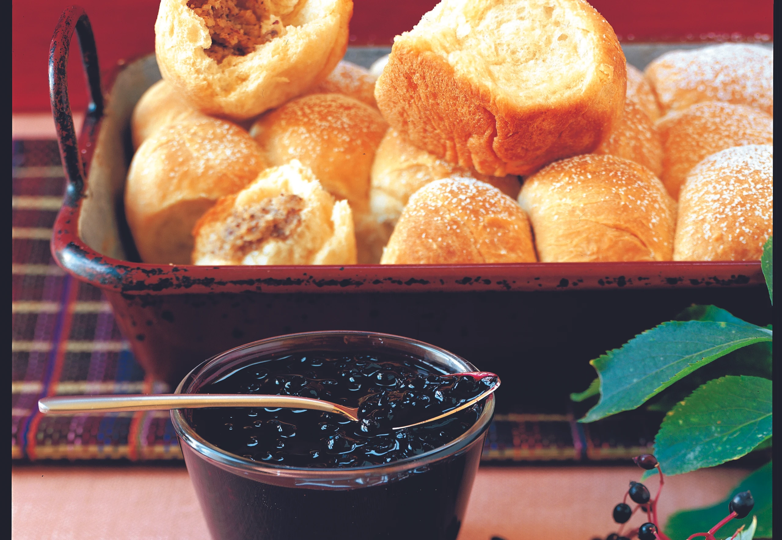 Rohr auf 160°C vorheizen. Buchteln im Rohr (mittlere Schiene / Gitterrost) ca. 20 Minuten backen. Buchteln mit Staubzucker bestreuen und am besten lauwarm mit dem Holunder-Ragout servieren.