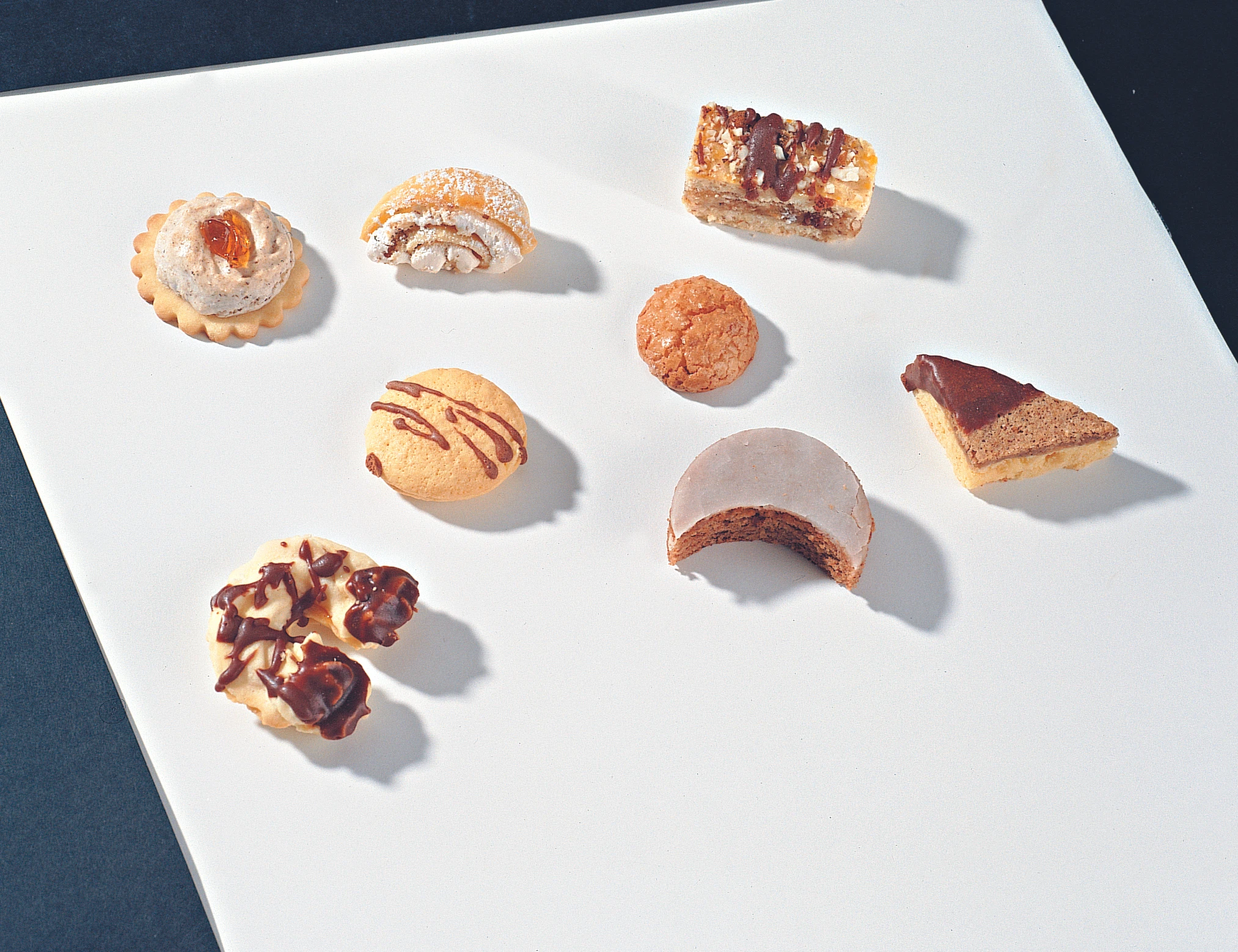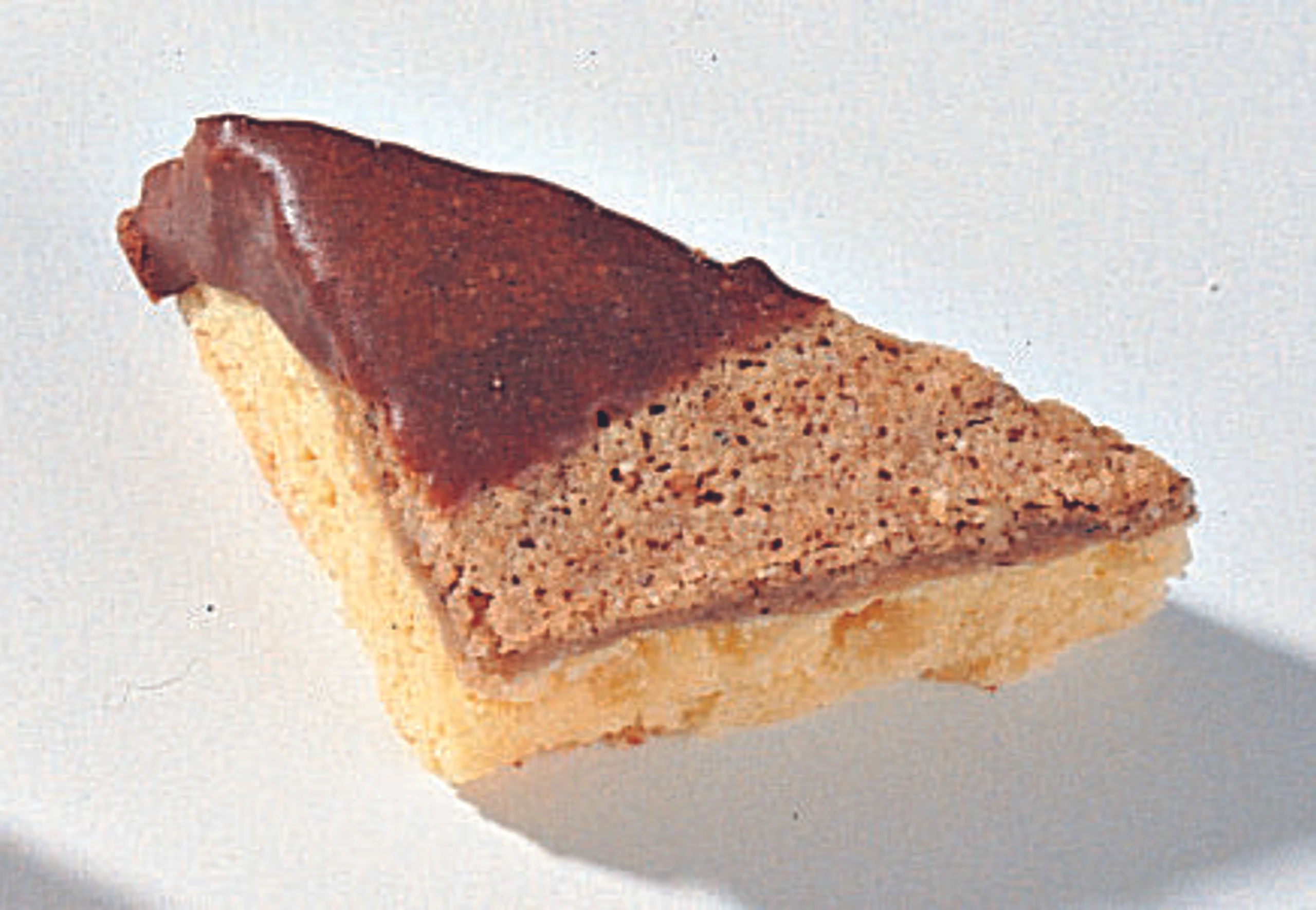 Masse auskühlen lassen und in gleichgroße Dreiecke (4-5 cm Seitenlänge) schneiden. Kekse mit einer Spitze in Schokoladeglasur tauchen, abtropfen und auf einem Abtropfgitter oder auf Backpapier trocknen lassen.