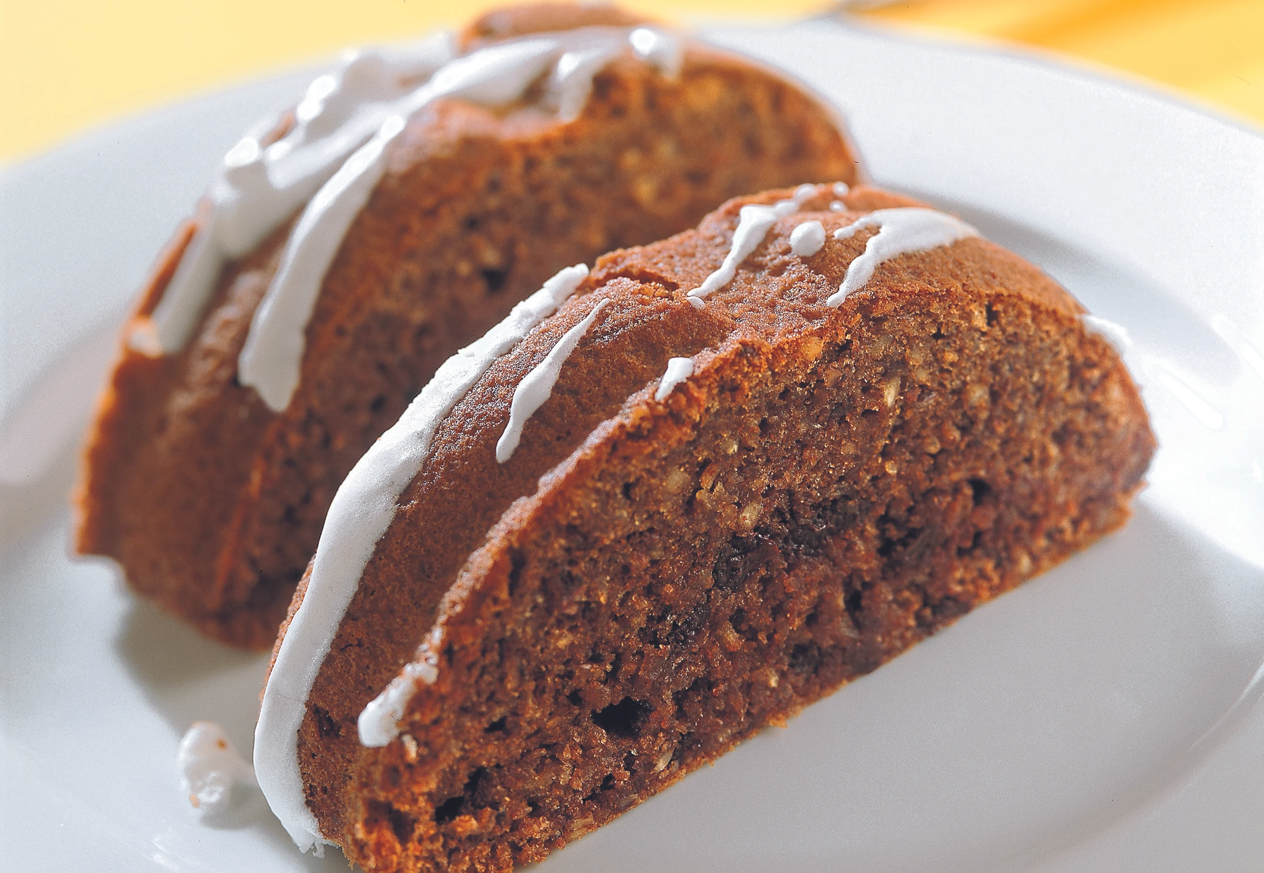 Masse in der Form verstreichen und im Rohr (mittlere Schiene / Gitterrost) ca. 35 Minuten backen. Kuchen herausnehmen, 2 Minuten rasten lassen, stürzen, Form abheben. Kuchen auskühlen lassen und mit Glasur verzieren.