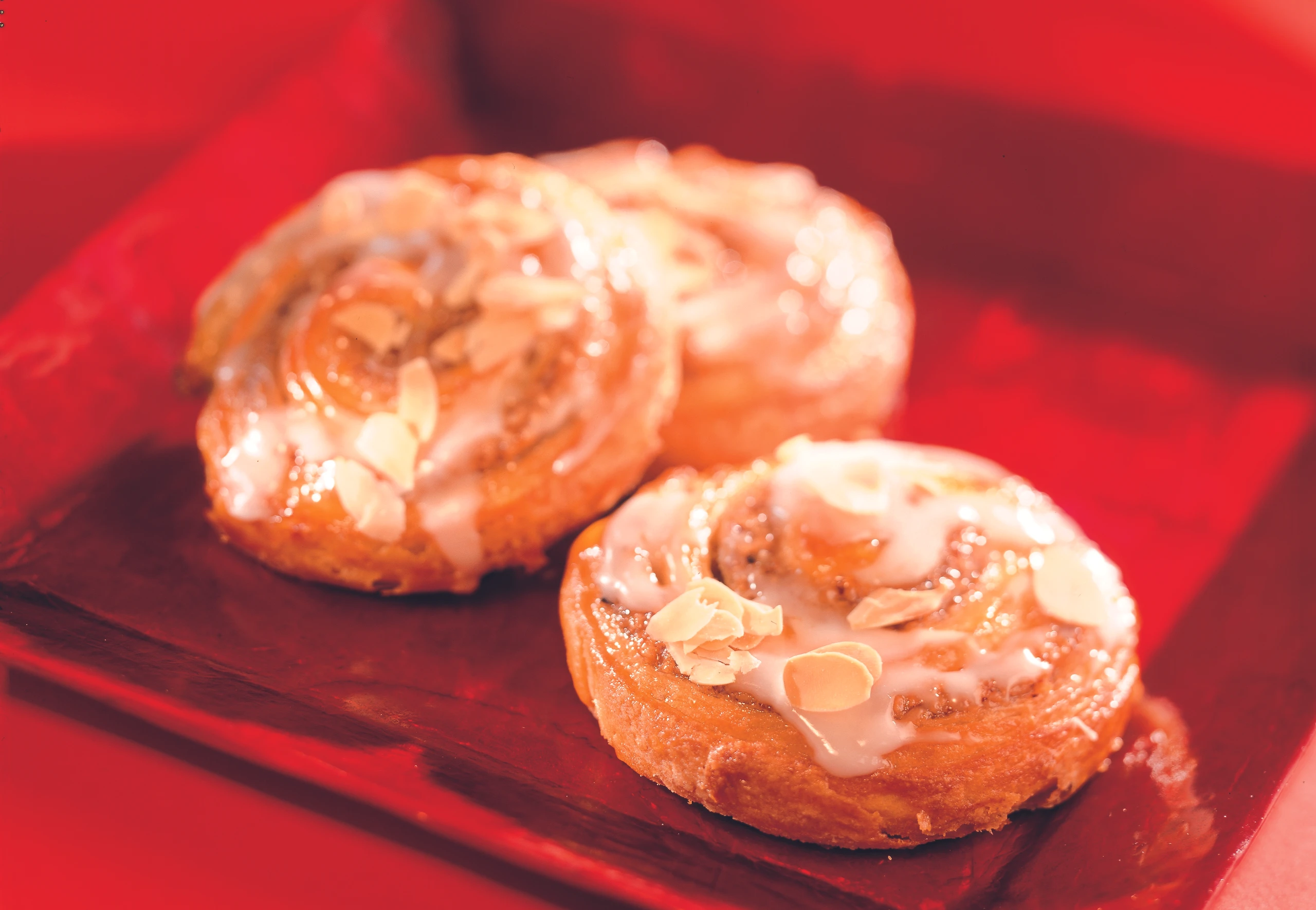 - Schnecken mit Ei bestreichen, im Rohr (mittlere Schiene) ca. 15 Minuten backen, herausnehmen und auskühlen lassen. Schnecken mit heißer Marmelade bestreichen und mit Zuckerglasur und Mandeln garnieren.