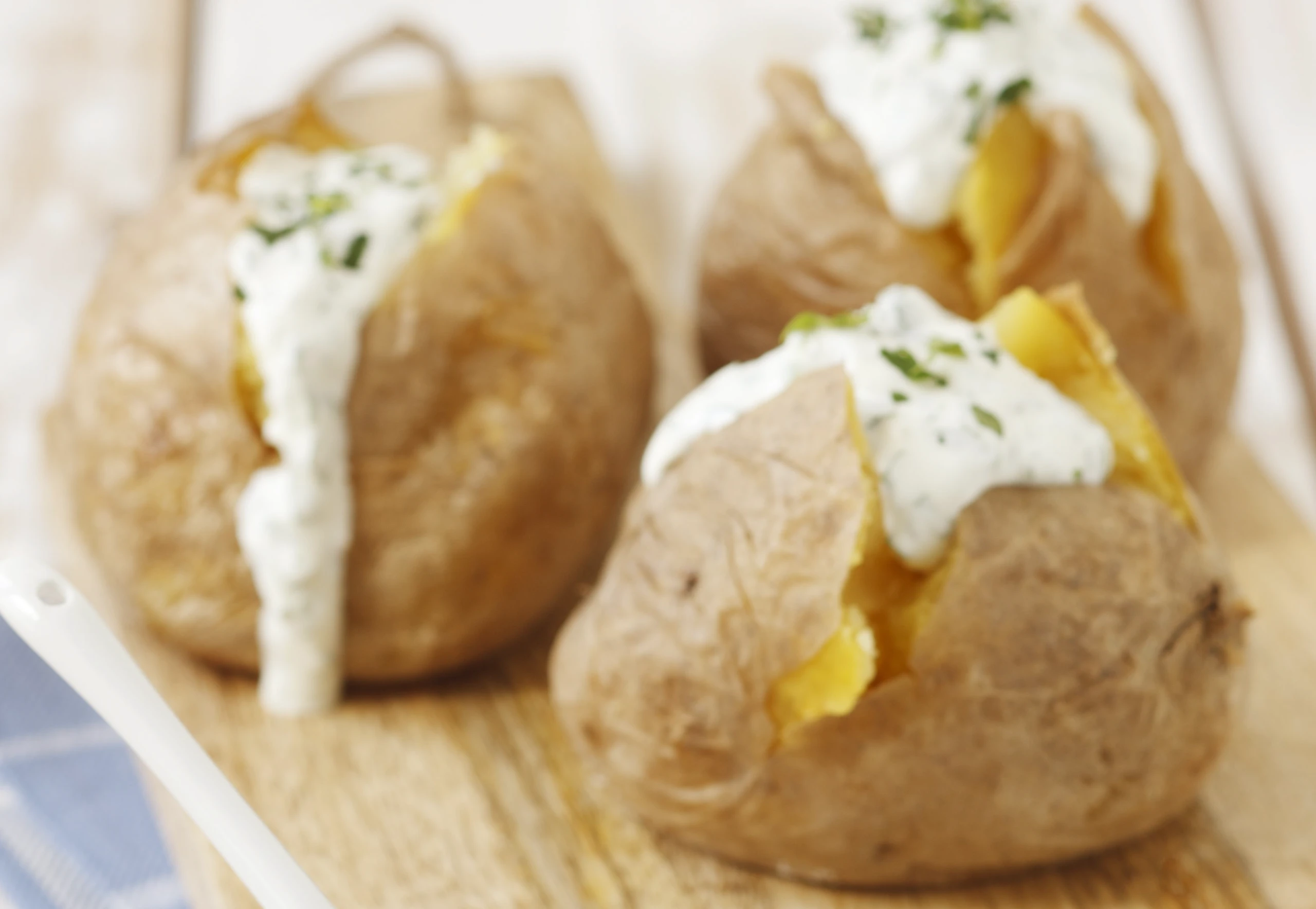 Erdäpfel aus der Folie wickeln, kreuzweise einschneiden und auseinanderdrücken. Mit je 1 EL Kräutertopfen füllen, Rest dazu servieren.