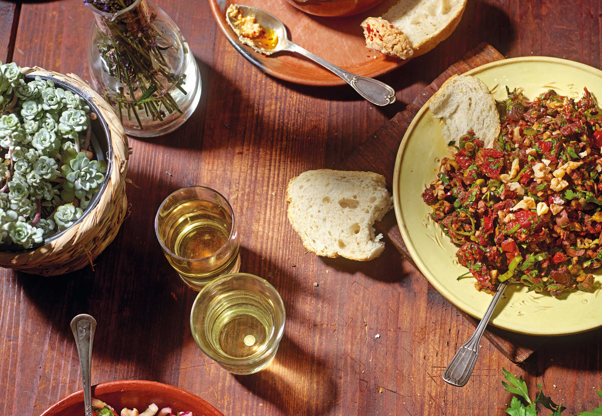 Olivensalat mit getrockneten Paradeisern und Walnüssen