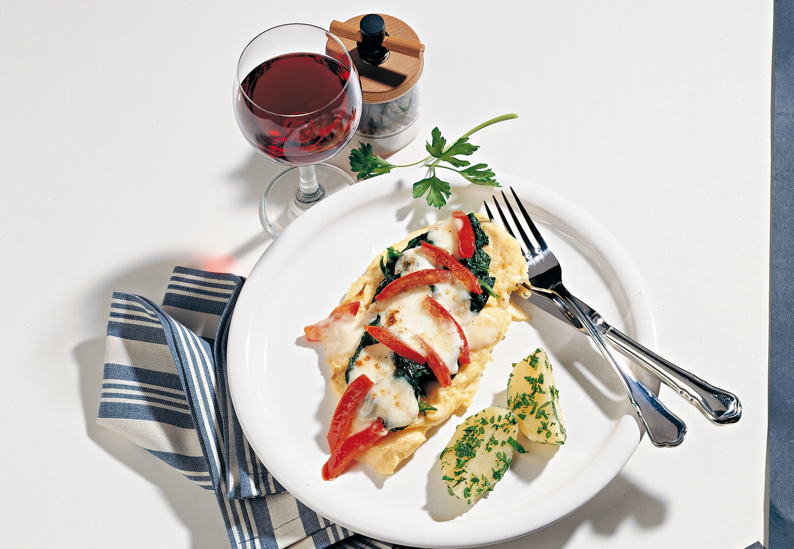 Omelett mit Spinat, Paradeisern und Mozzarella