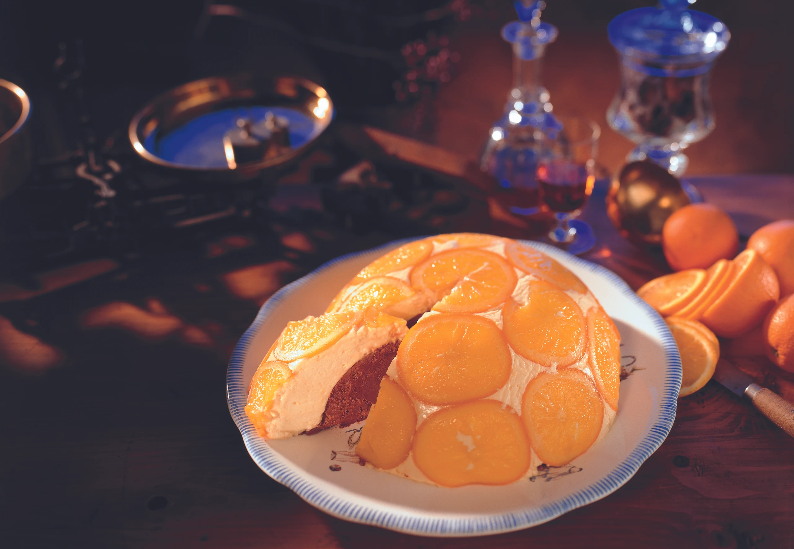 Creme behutsam in die mit Orangenscheiben ausgelegte Schüssel füllen. Eine kleinere Schüssel (Inhalt ca. 0,75 l) außen mit Klarsichtfolie überziehen. Schüssel vorsichtig in die Orangencreme drücken, so dass zwischen den beiden Schüsseln eine ca. 3 cm dicke Cremeschicht bleibt. Creme mindestens 3 Stunden kühlen.