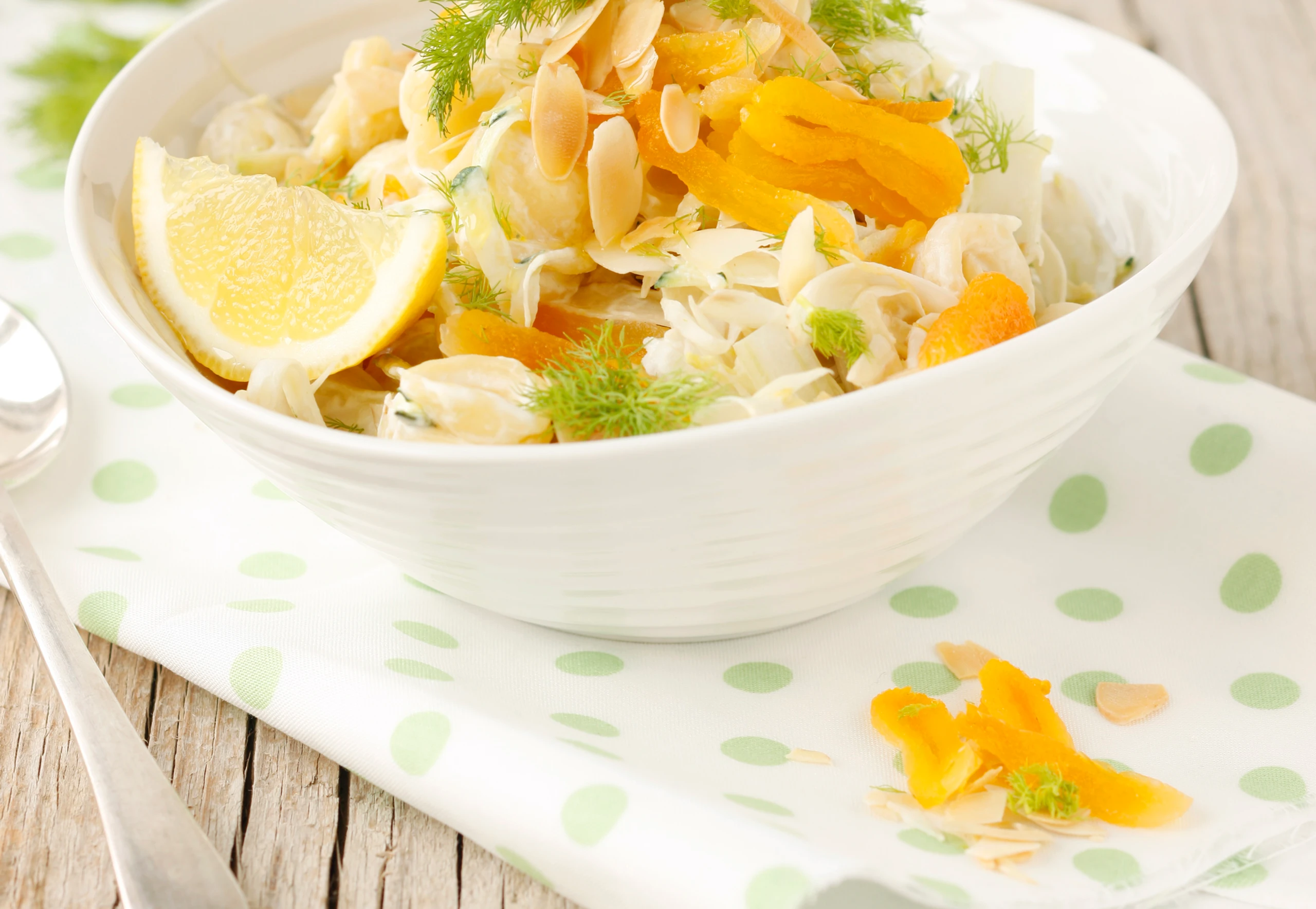 Fenchel und Marillen in Streifen schneiden. Zucchini grob raspeln. Fenchel, Marillen und Zitronenschale im Olivenöl anschwitzen und mit Suppe aufgießen. Frischkäse und Zucchini einrühren. Sauce aufkochen, mit Salz, Pfeffer und Muskat würzen.