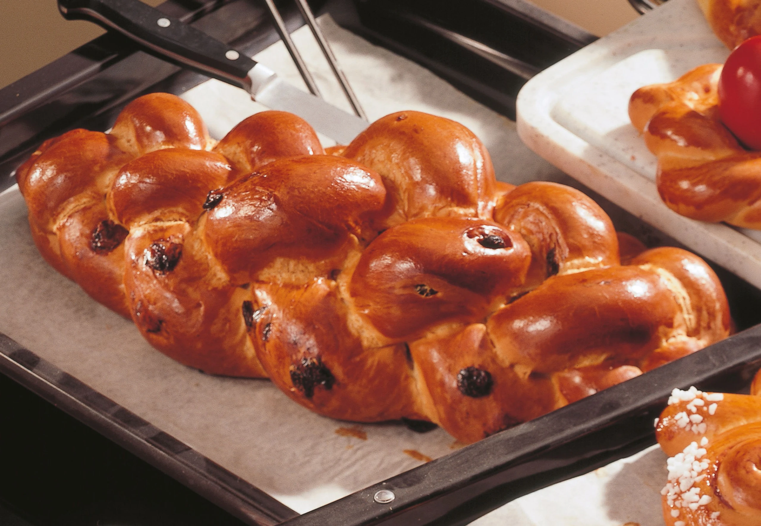 Striezel mit Dotter bestreichen und im Rohr (mittlere Schiene) ca. 35 Minuten goldbraun backen.