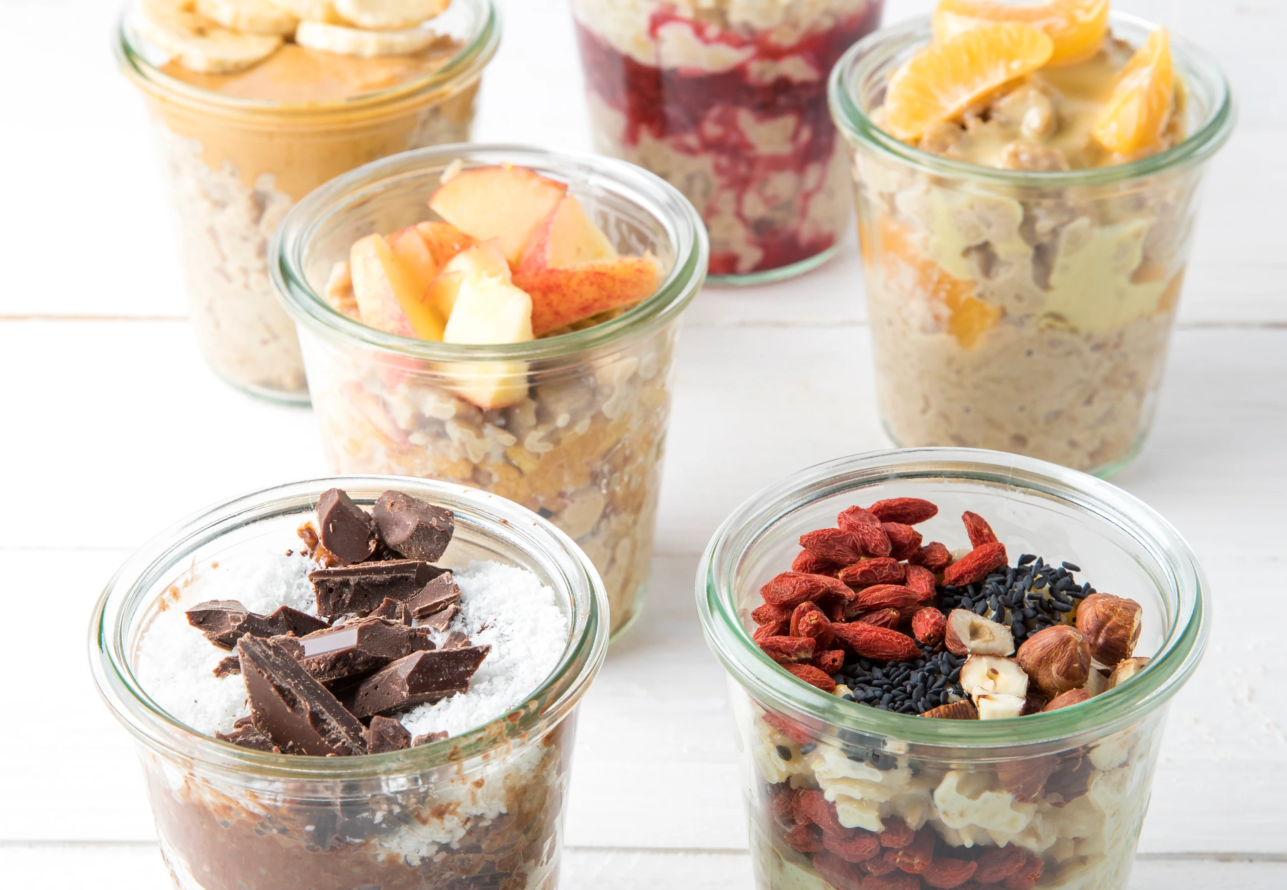 Für die Superfood Overnight Oats Banane mit einer Gabel zerdrücken und mit den restlichen Zutaten in einem Glas (Inhalt ca. 500 ml) vermischen und verschließen. Über Nacht kalt stellen.
