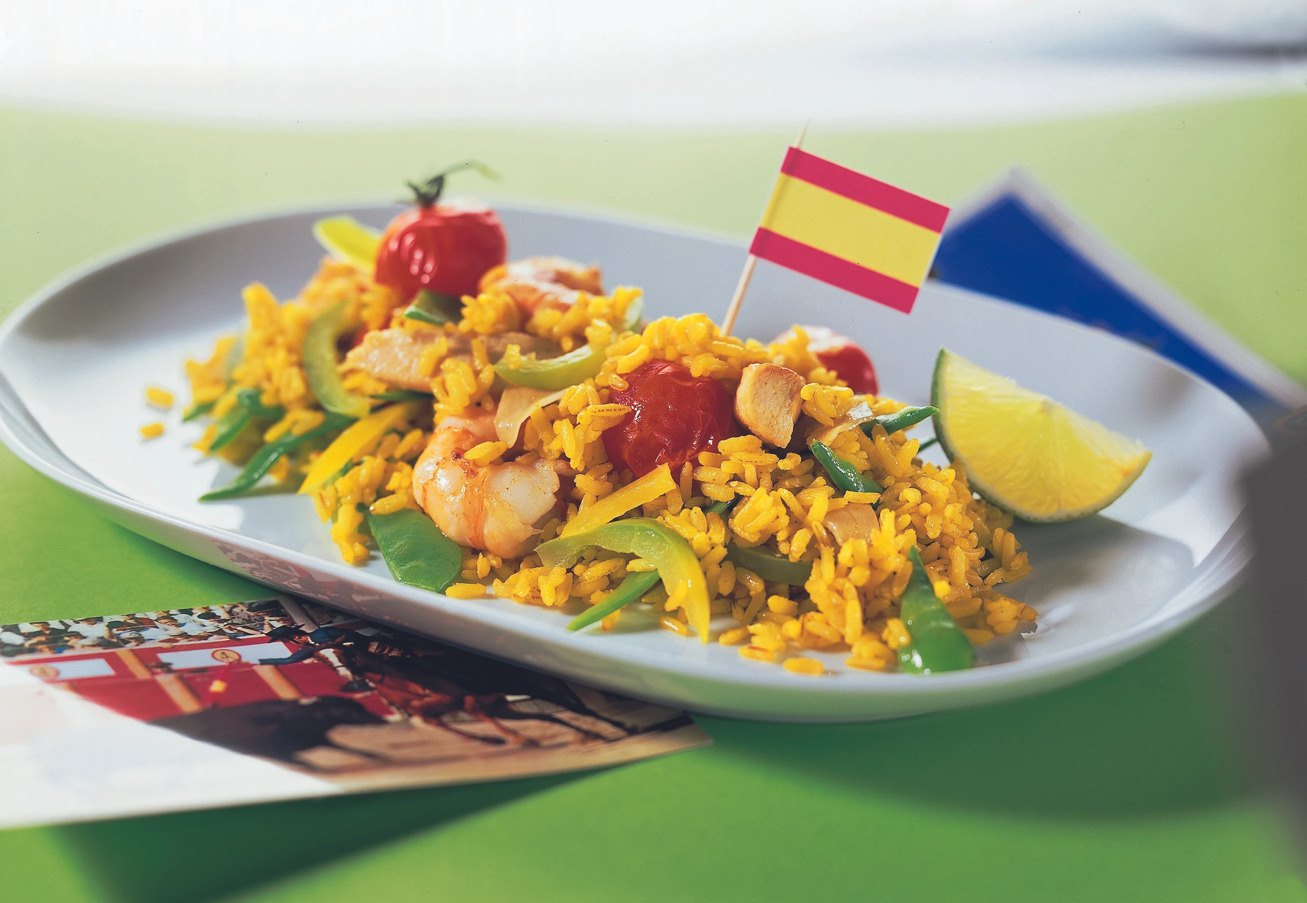 2 zerdrückte Knoblauchzehen und Natur-Reis unterrühren und kurz mitrösten. Reis mit der Suppe aufgießen und ca. 10 Minuten zugedeckt köchlen lassen. Nach ca. 5 Minuten Paprika und Erbsenschoten zugeben und mitgaren.