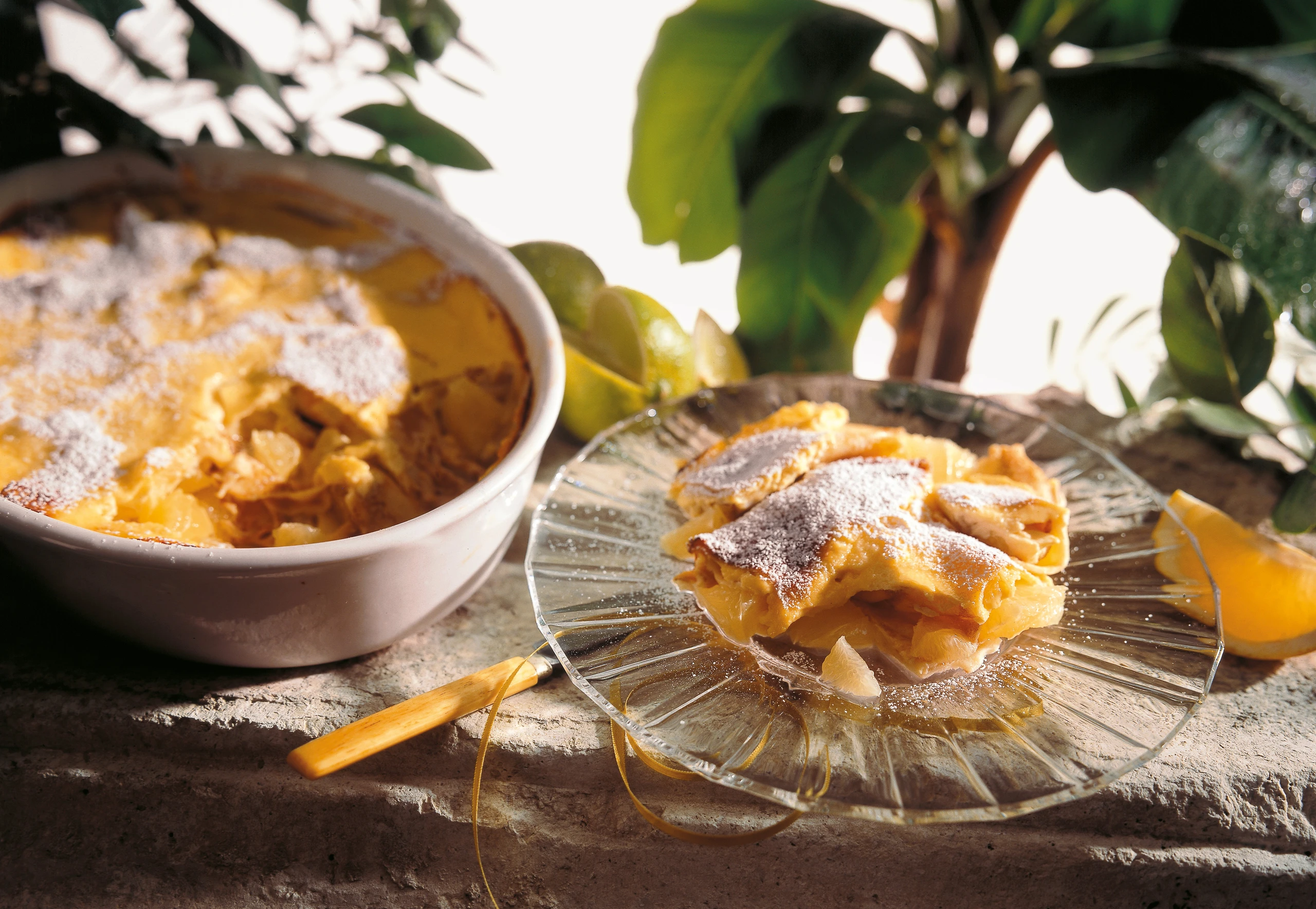 Palatschinken-Auflauf mit Grapefruits und Joghurt