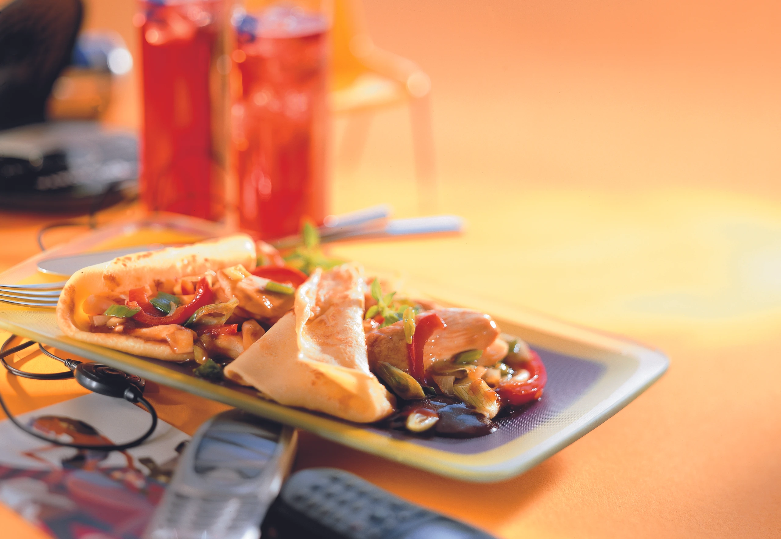 Palatschinken mit Huhn und Sprossen