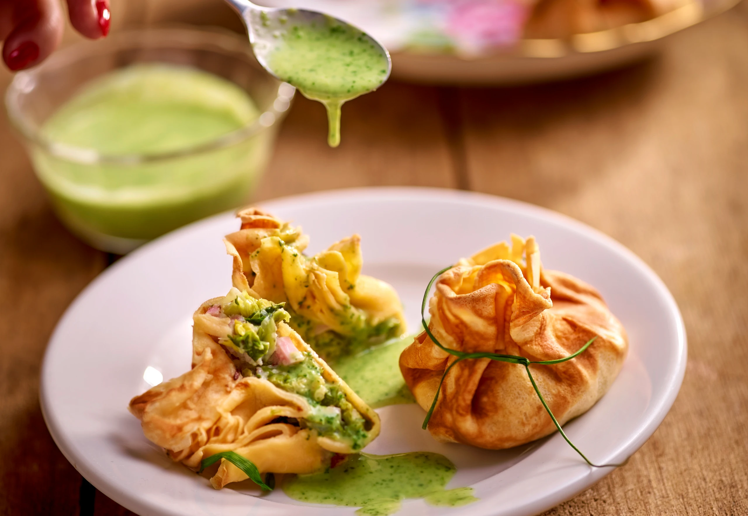 Palatschinken-Sackerl mit Schinken-Kohlfülle