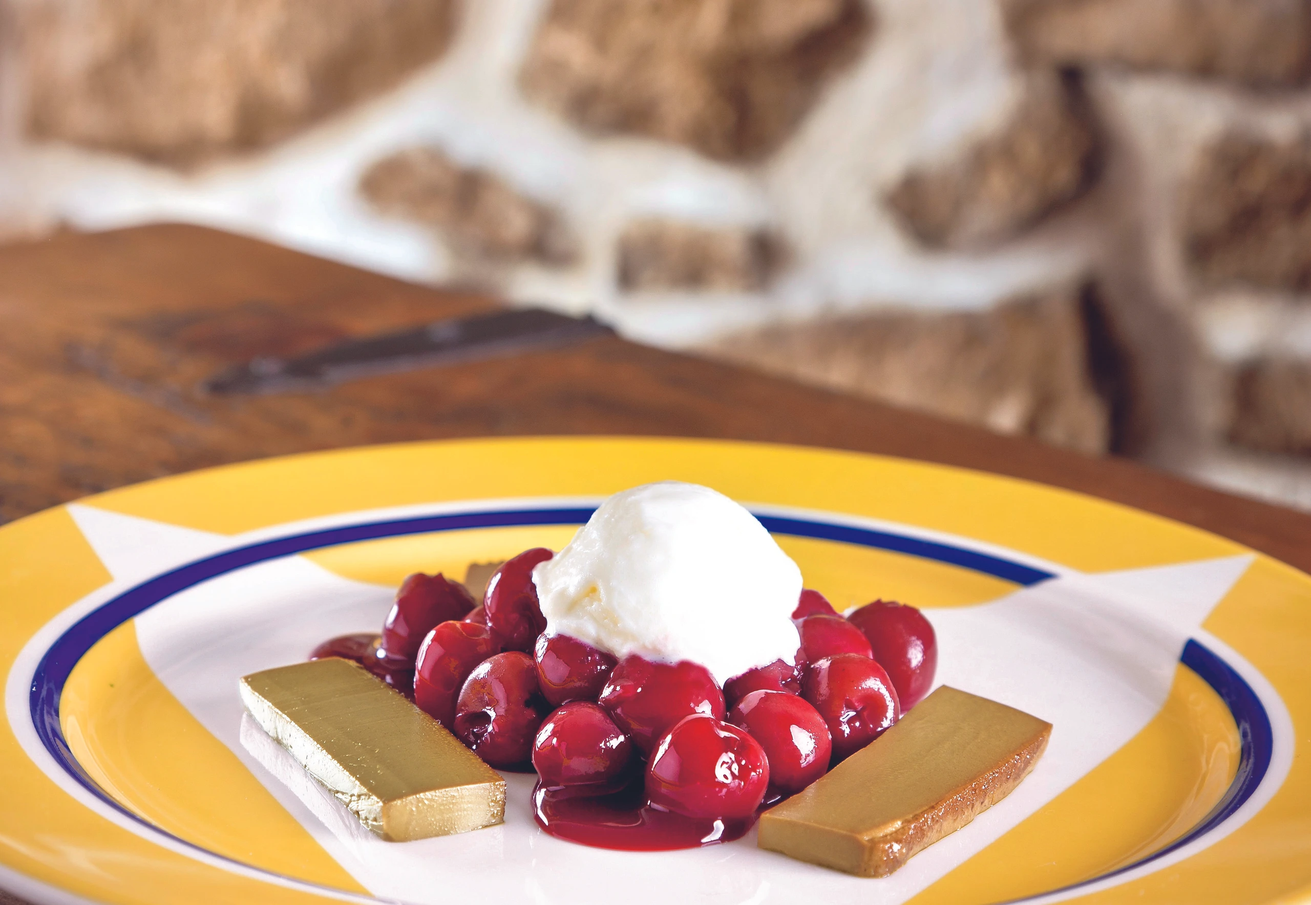 Panna cotta mit Kürbiskernöl und Kirschenragout
