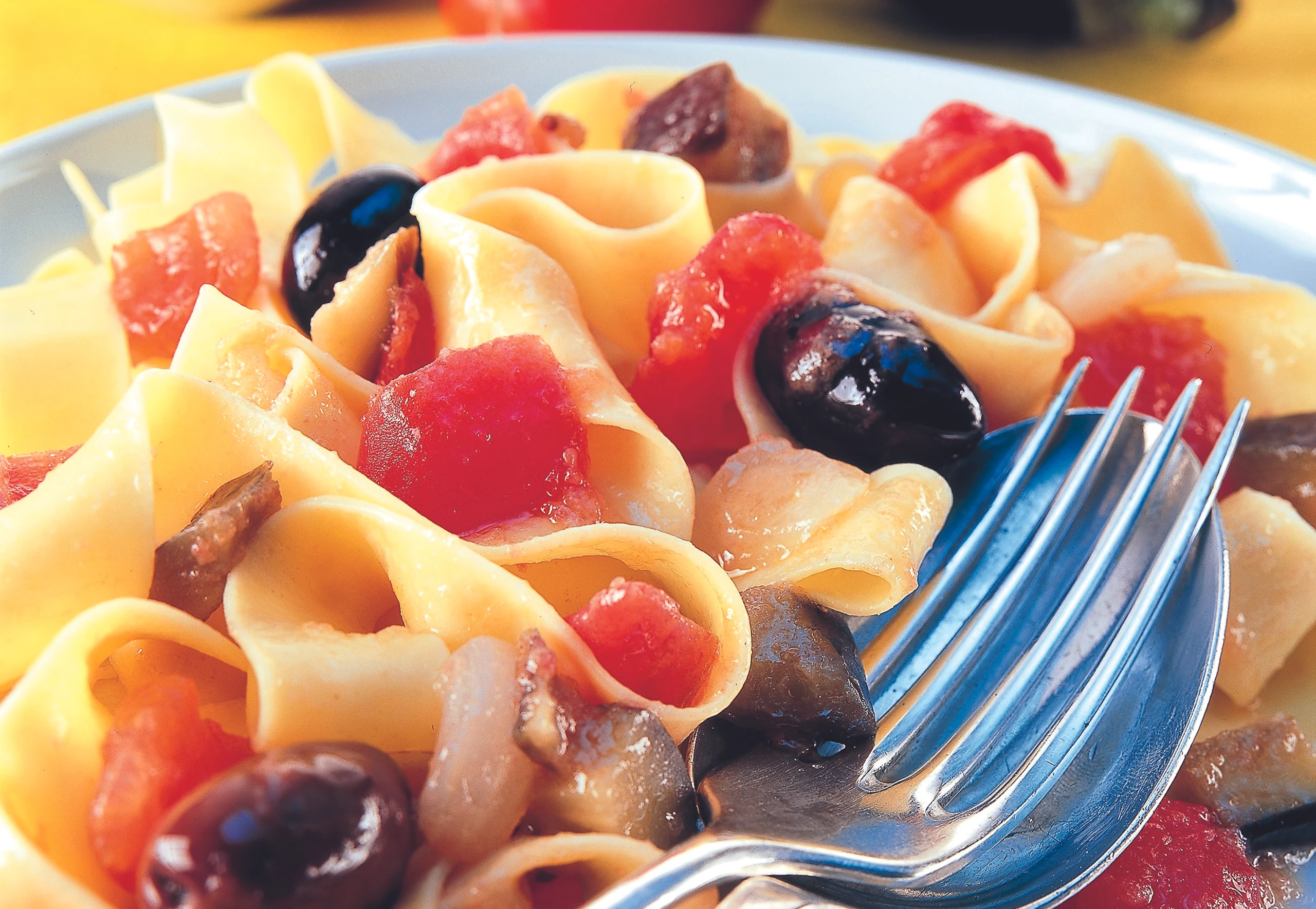 Pappardelle mediterranea: Nudeln mit Melanzani, Oliven & Paradeisern