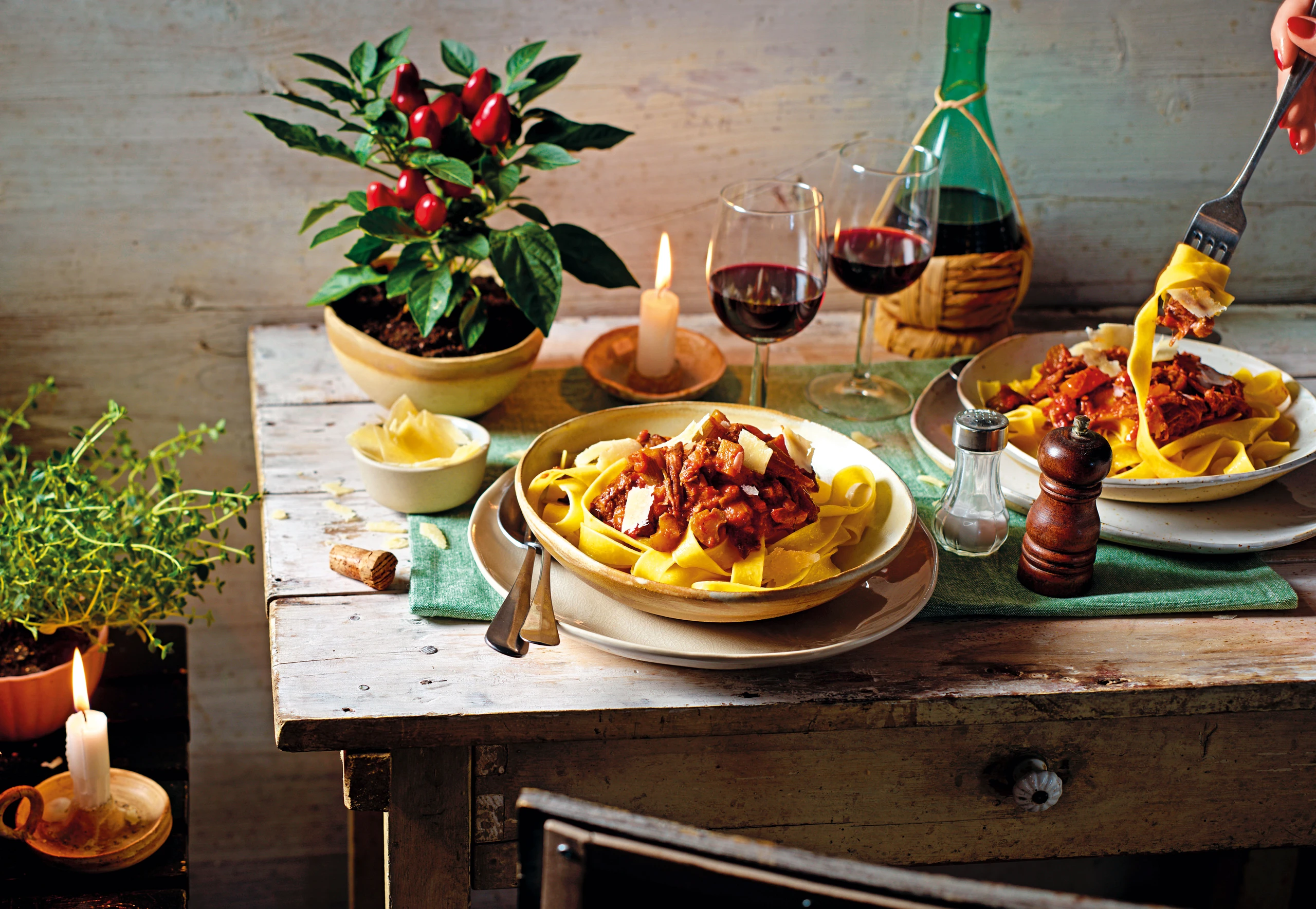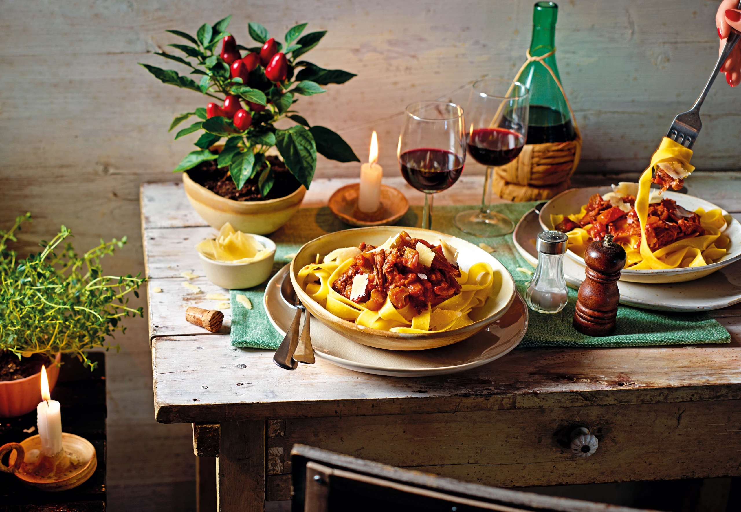 Ein klassischer Mittelburgenland DAC mit ausgewogenen Tanninen und dunklem Beeren-Kräuterkonfit am Gaumen verfügt über die optimale Charakteristik zu dieser Pasta.Aus dem Heft: