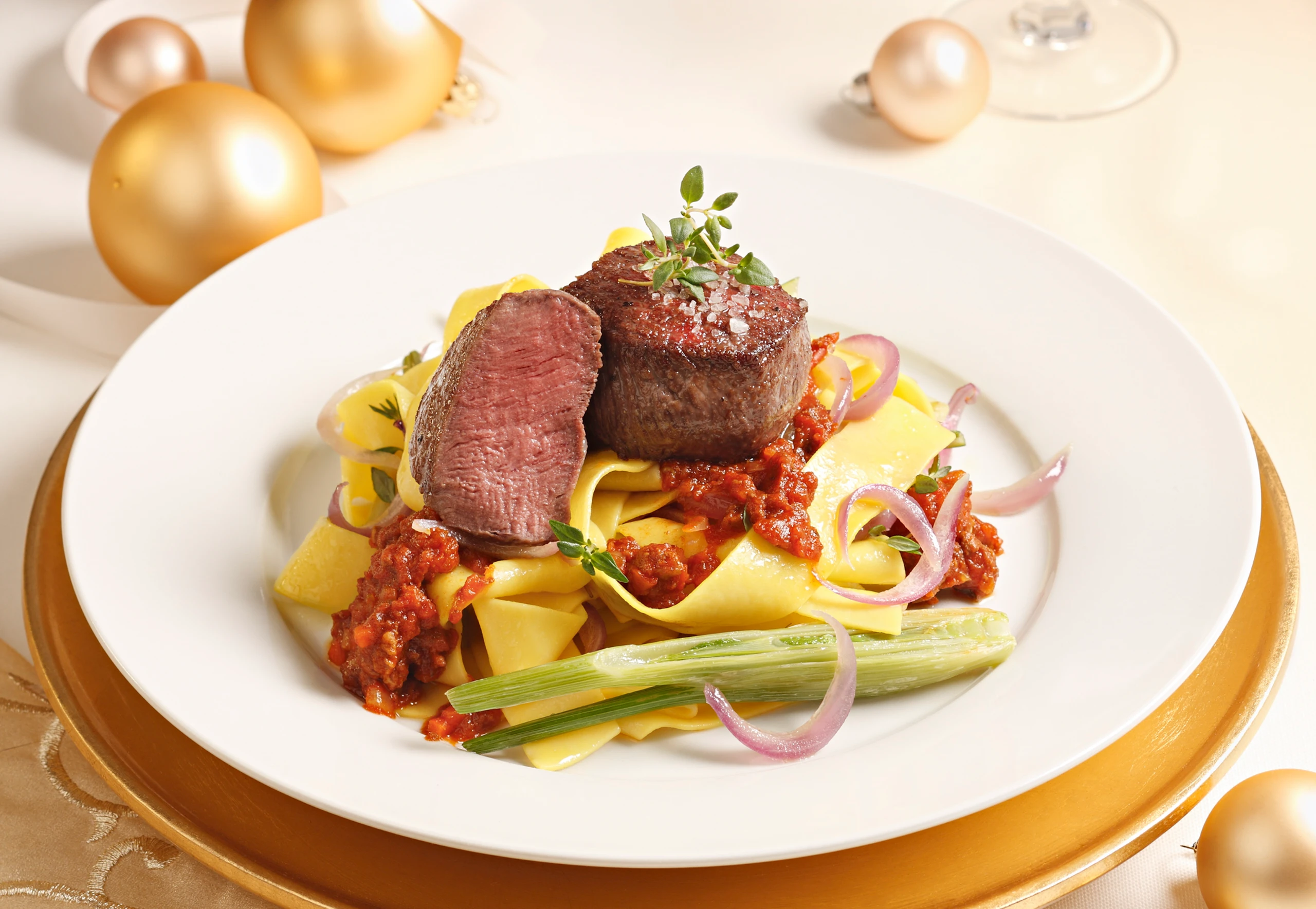 Rehmedaillons mit Pappardelle und Fenchel