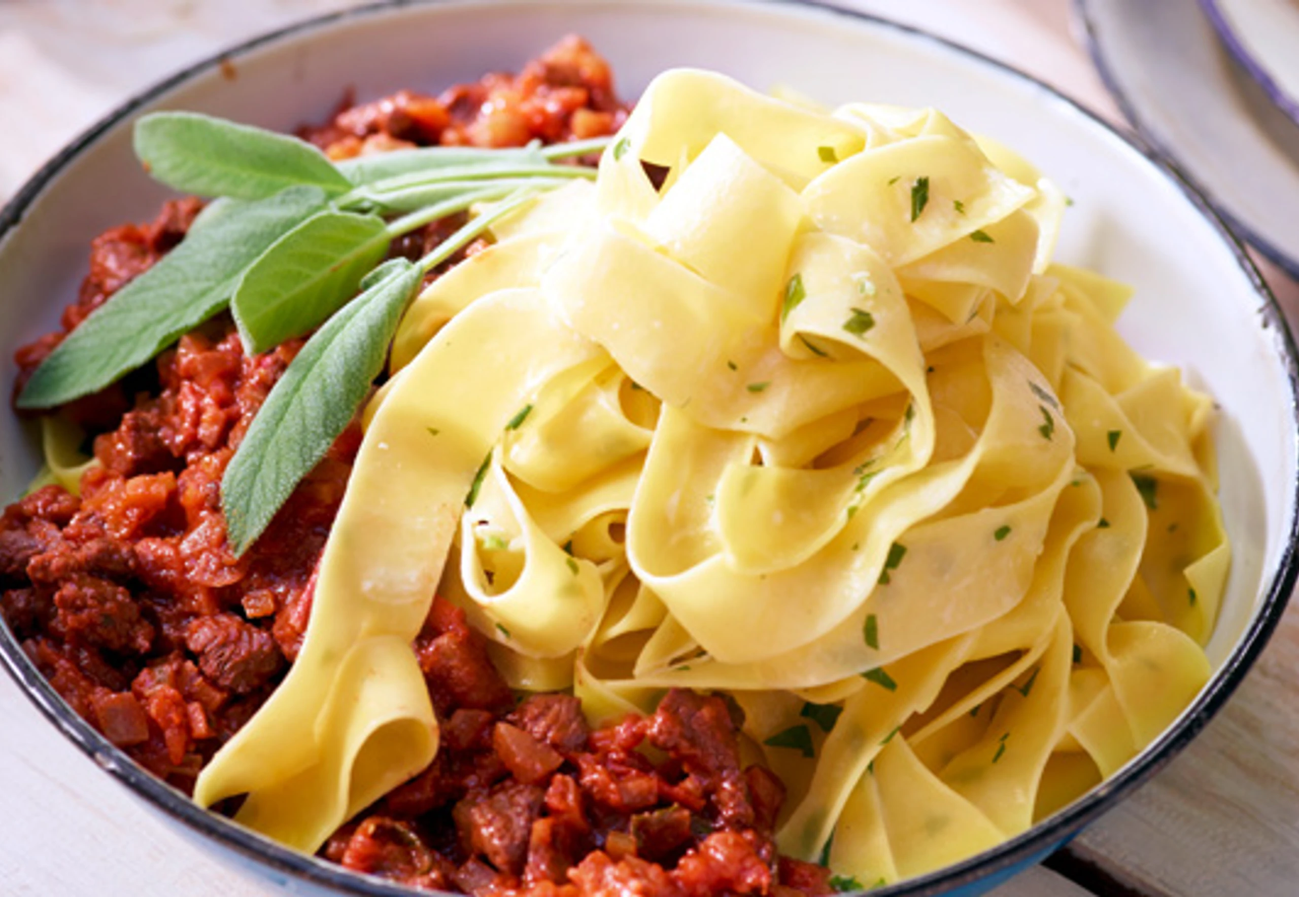 Pappardelle bissfest kochen, mit dem Sugo anrichten, mit Parmesan servieren.
