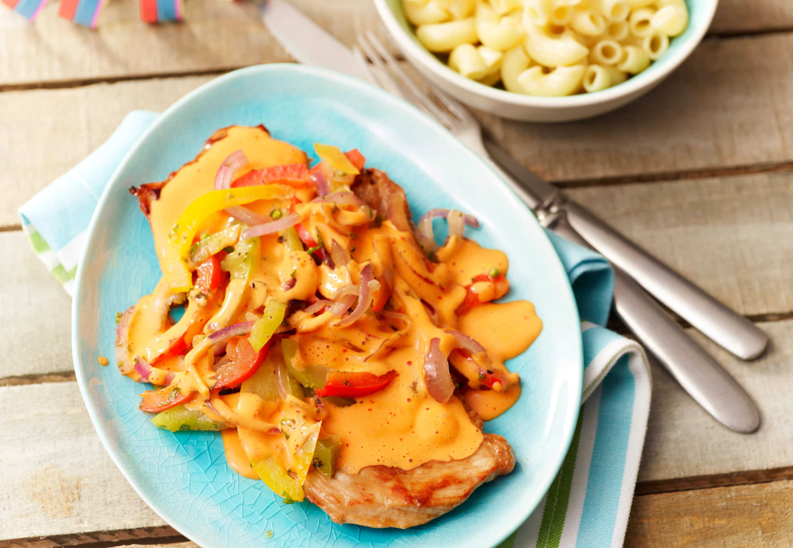 | 3 Stk. | Halbe Paprika (rot, grün, gelb) |