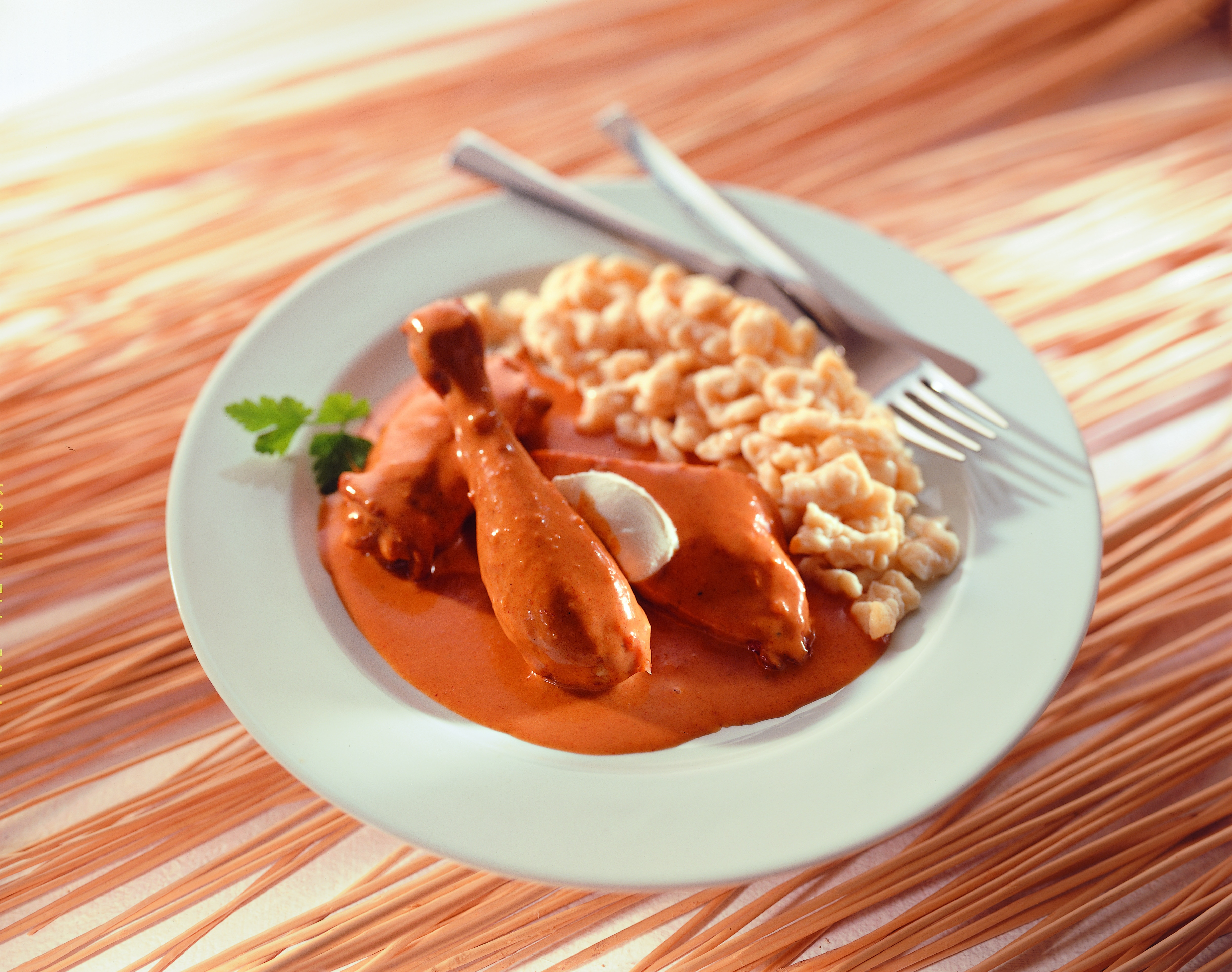 Paprikahendl mit Butternockerln