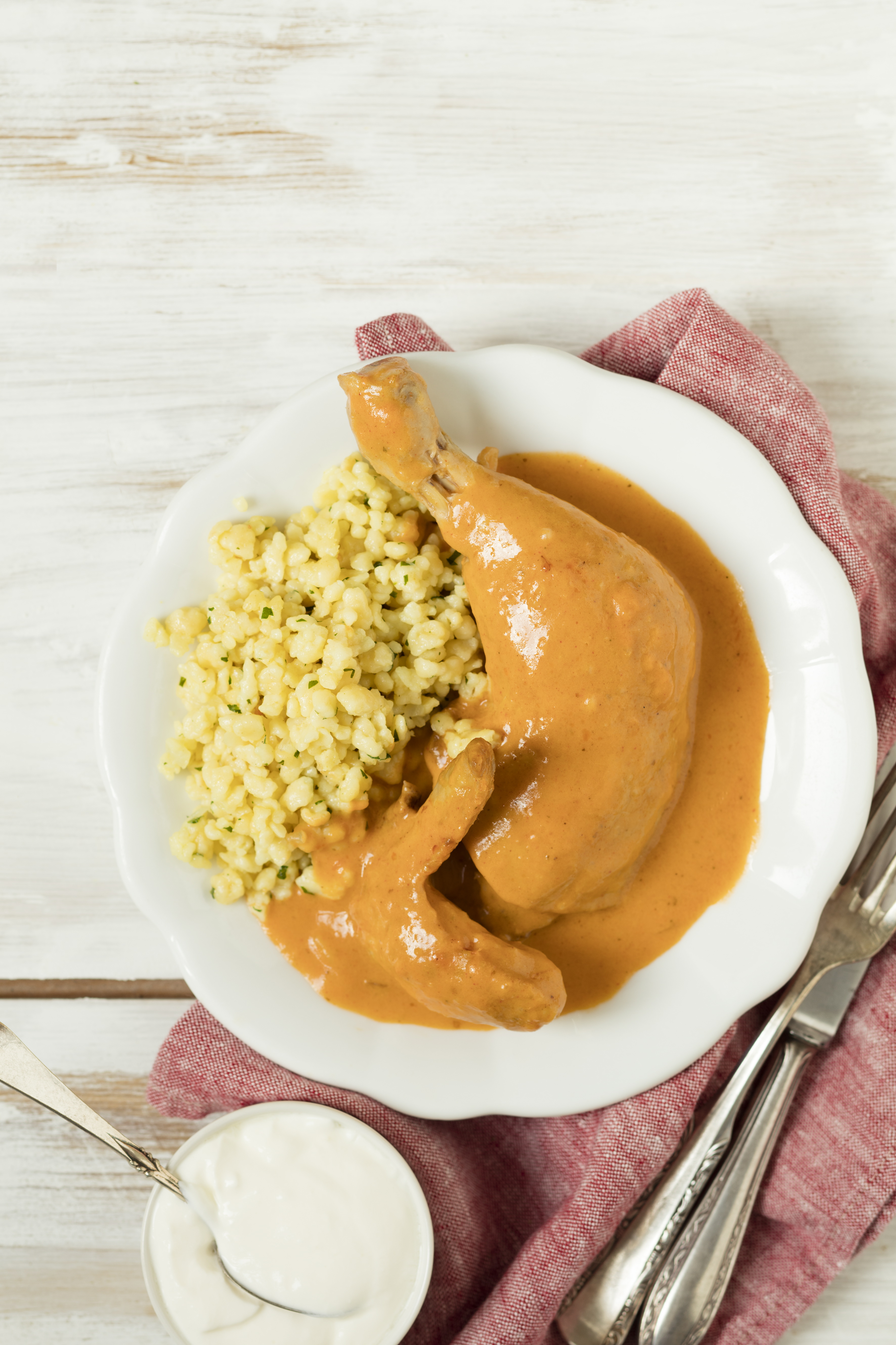 Paprikahendl mit Tarhonya