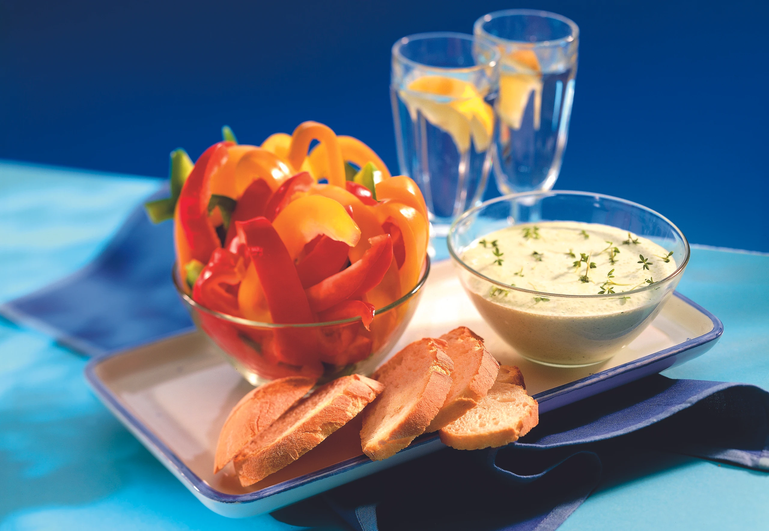Die Paprikastreifen mit der Sauce servieren. Dazu passt Baguette.