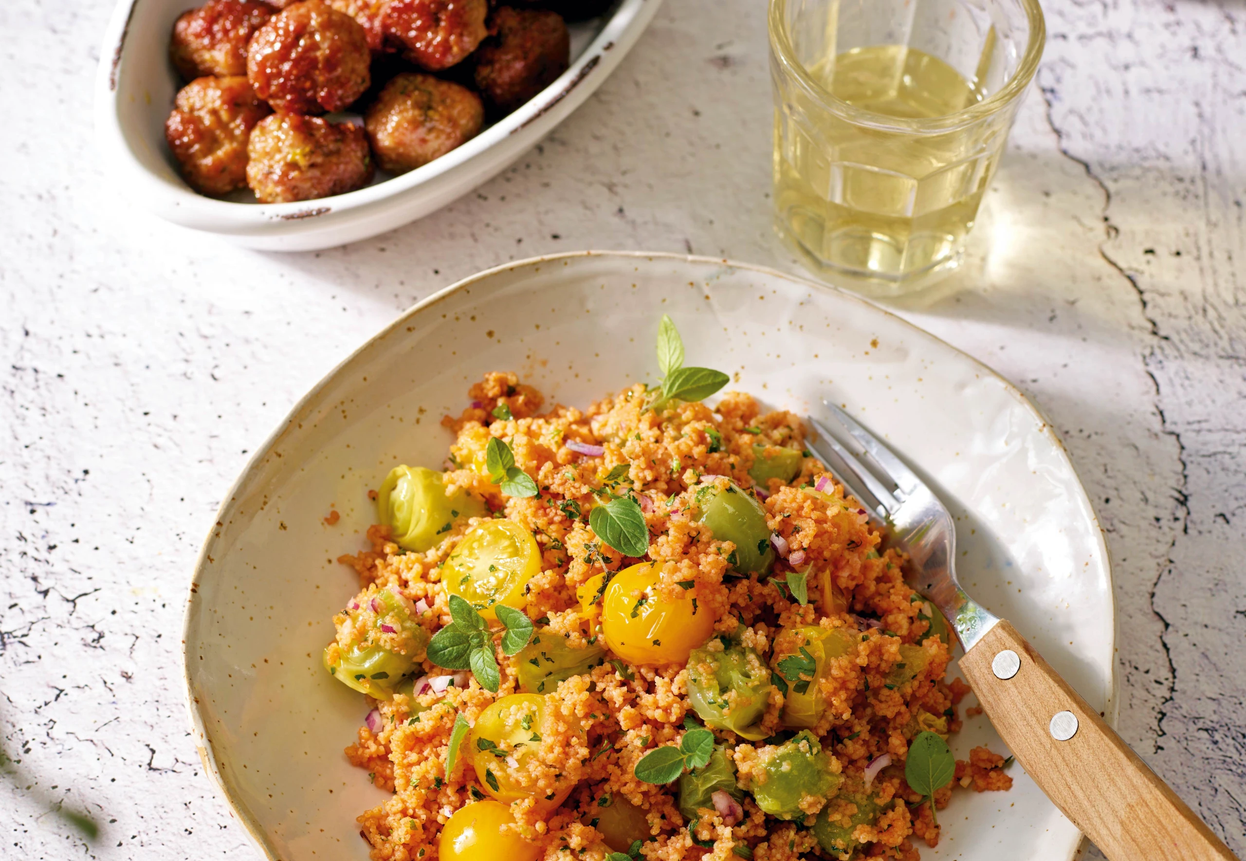 Couscous eventuell mit Oreganoblättchen garnieren und mit den Fleischbällchen servieren.
