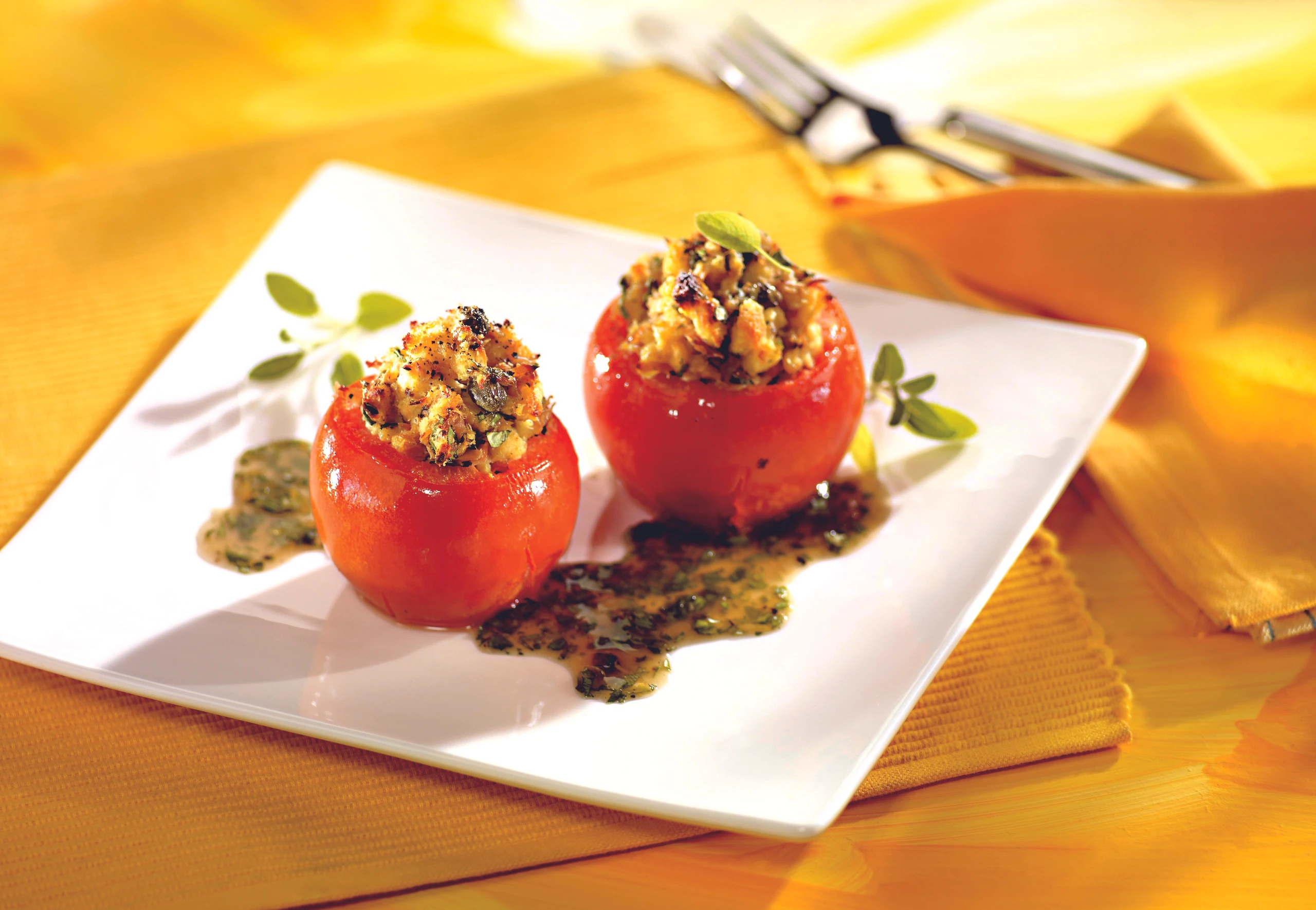 Rohr auf 200°C vorheizen. Auflaufform mit Öl ausstreichen. Paradeiser mit der Knödelmasse füllen, in die Form setzen und im Rohr (mittlere Schiene / Gitterrost) ca. 25 Minuten backen.