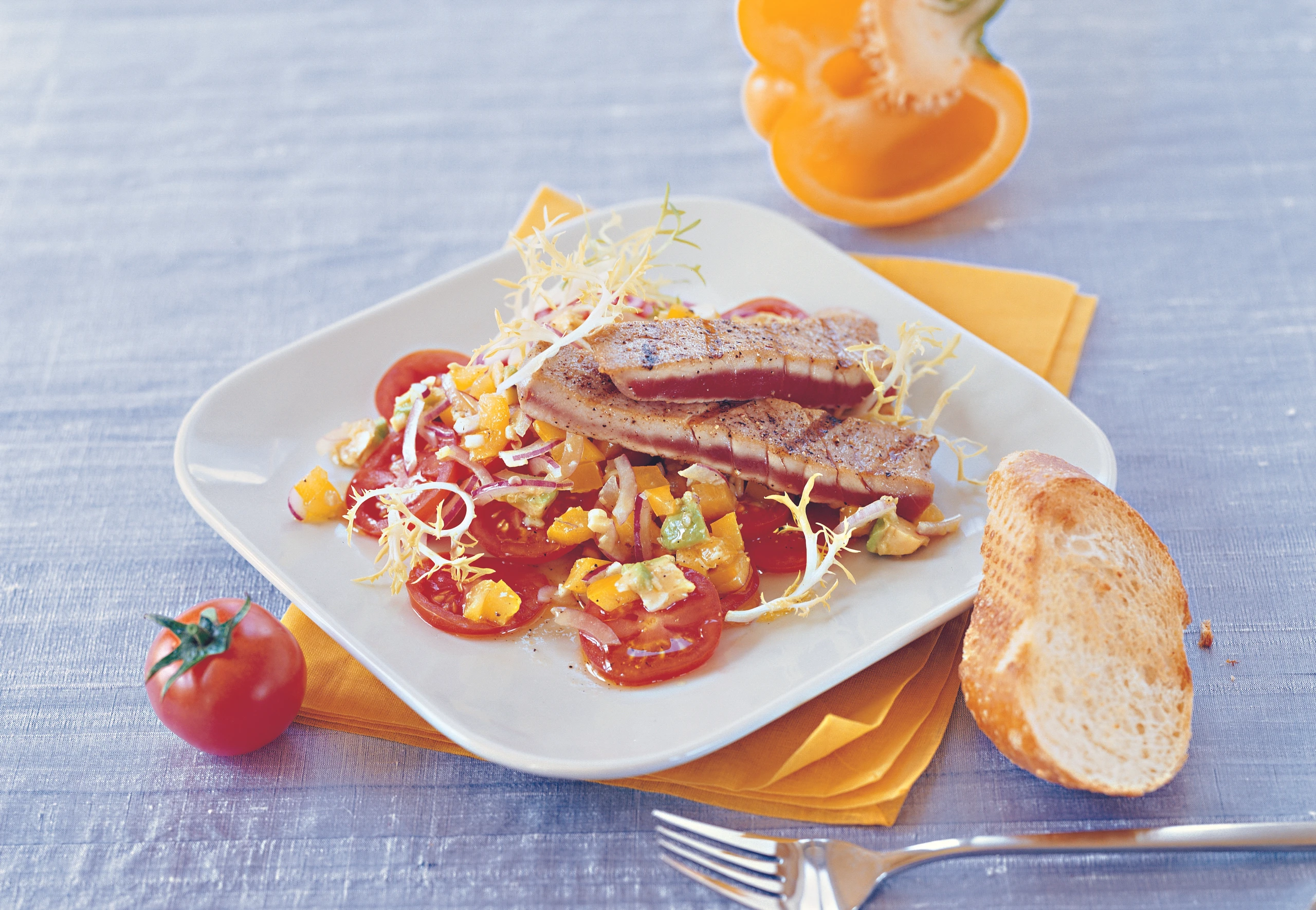 Paradeiser-Thunfischsalat mit Avocado und Zitronengras