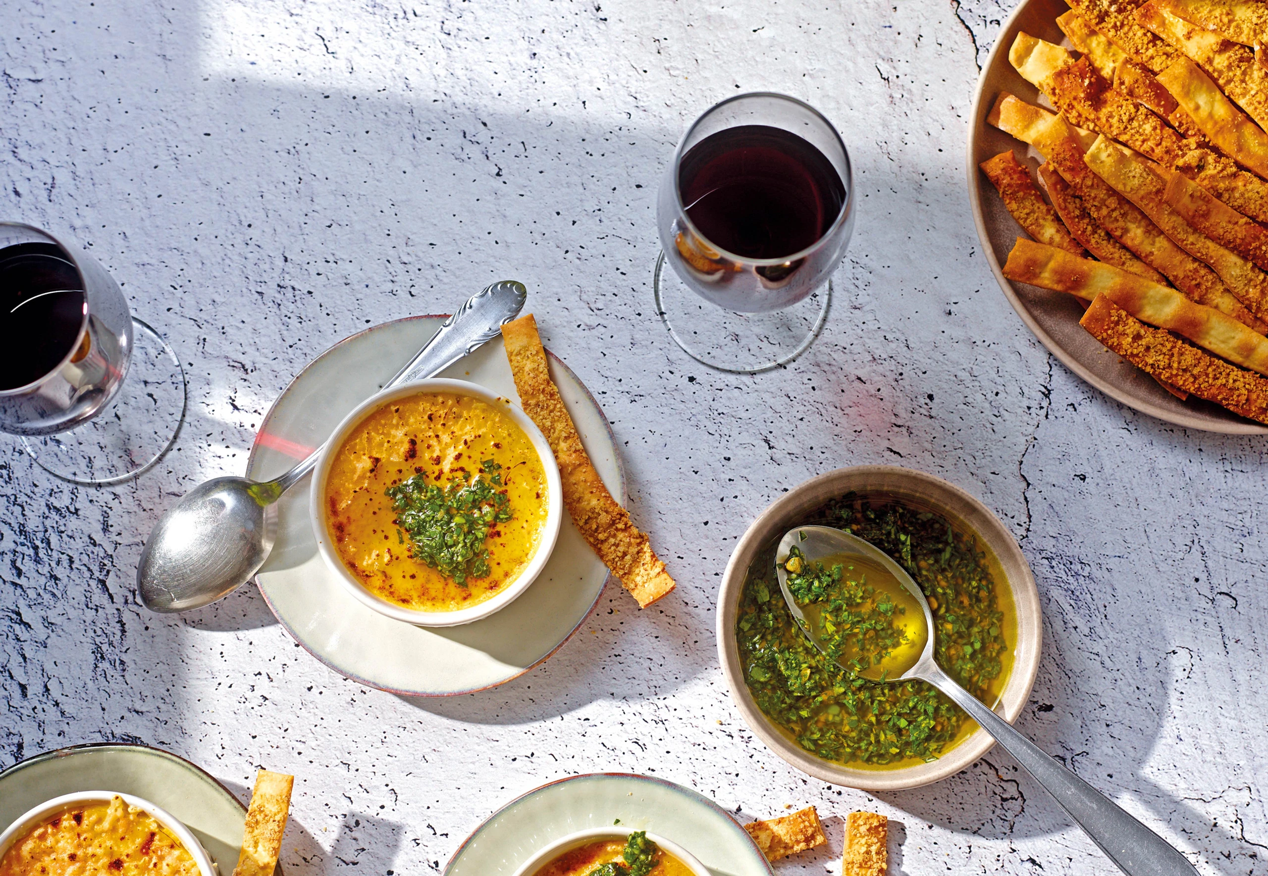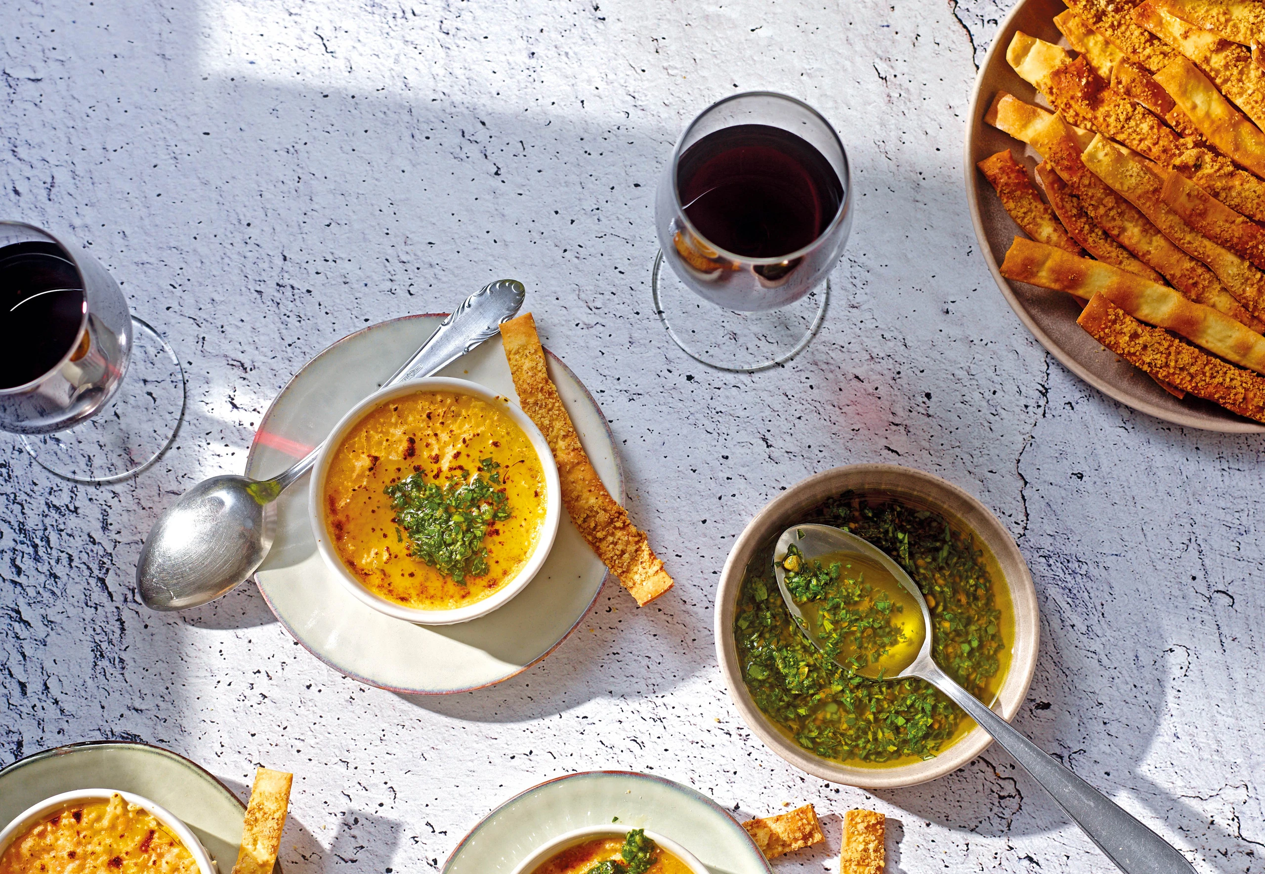Parmesan-Crème-brûlée mit Basilikumsalsa