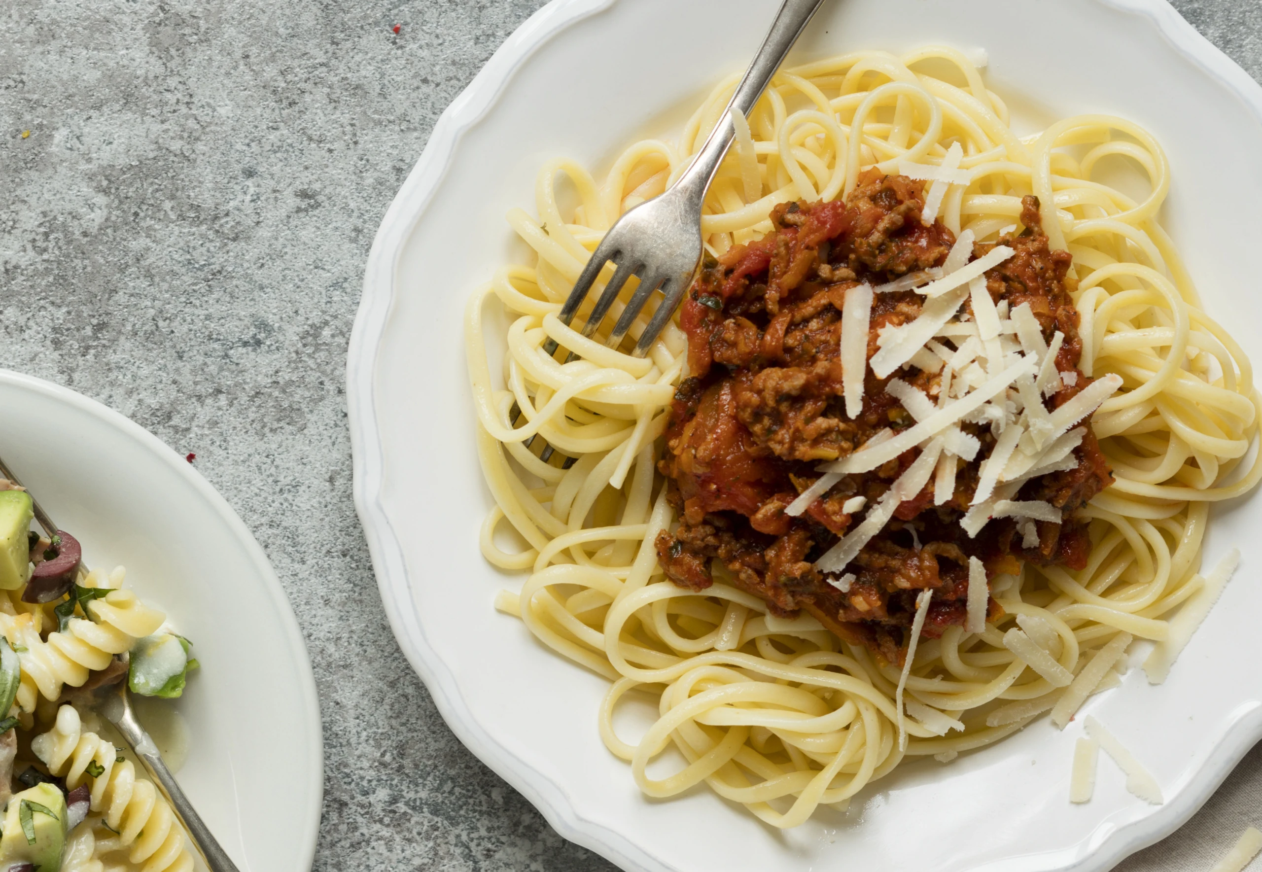Gemüse schälen und grob raspeln und in 2 EL Öl hell anschwitzen. Faschiertes untermischen und anbraten; dabei umrühren. 1 TL Paradeismark untermischen. Mischung mit Salz, Pfeffer, Oregano und zerdrücktem Knoblauch würzen. Suppe und Pelati zugeben, Sauce ca. 20 Minuten köcheln. Kräuter einrühren. Falls nötig, noch wenig Wasser zugießen.