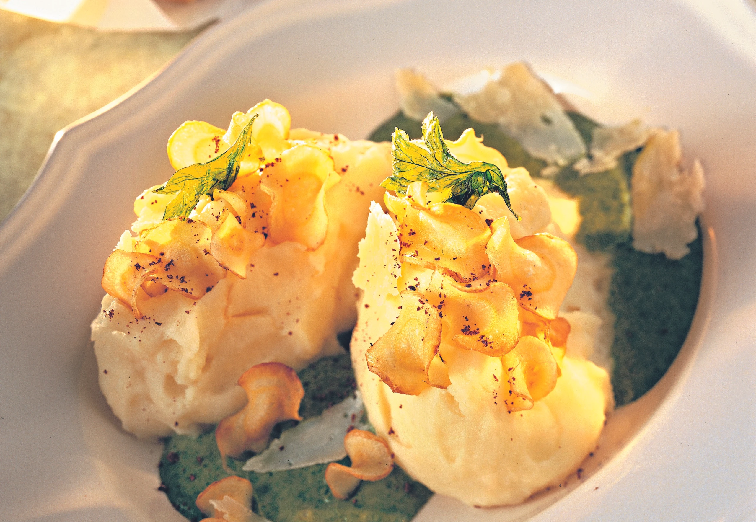 Pastinakenpüree mit Parmesan und Kräutersauce