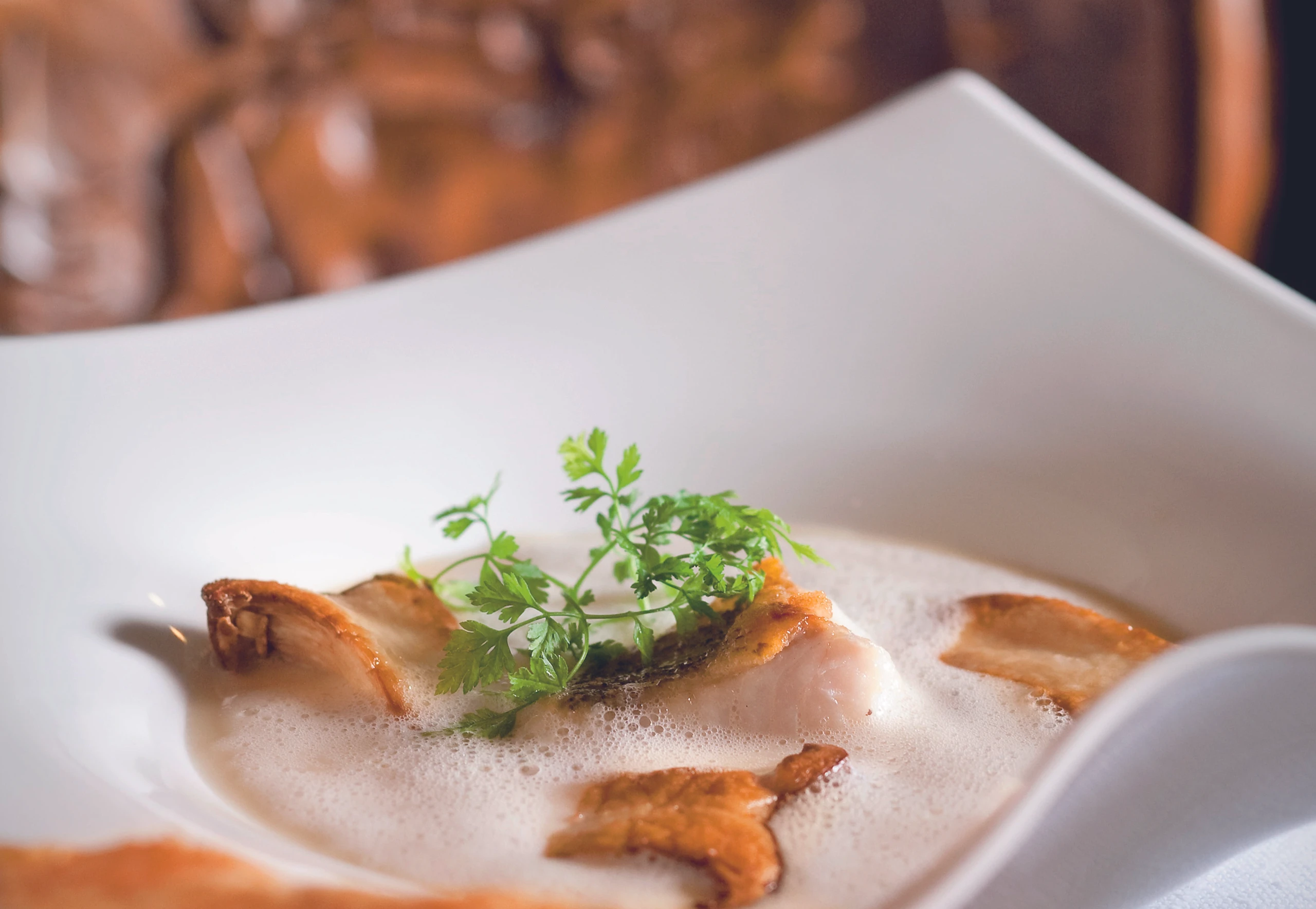 Suppe aufkochen und pürieren. Mit Zander und Seitlingen anrichten, mit Kerbel garnieren und mit Sesamstangerln servieren.