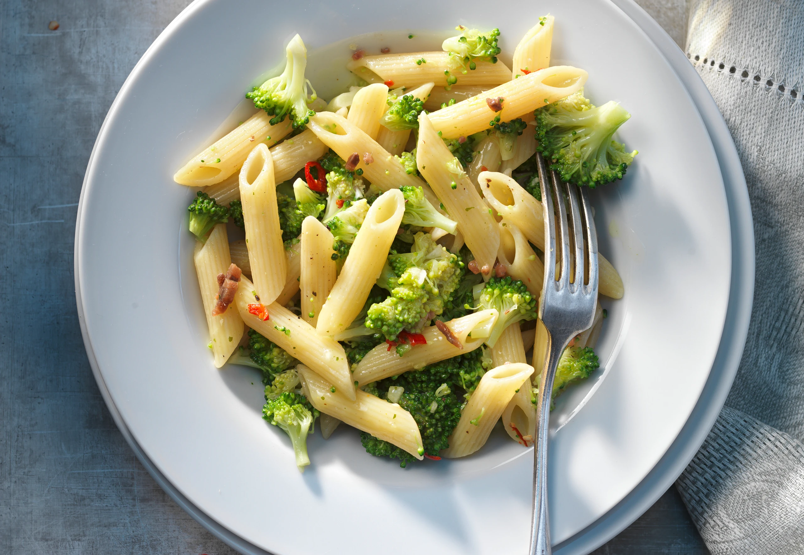Stärke mit Wasser vermischen, in die Sauce rühren und kurz köcheln. Brokkoli und Chili zugeben und bissfest dünsten.
