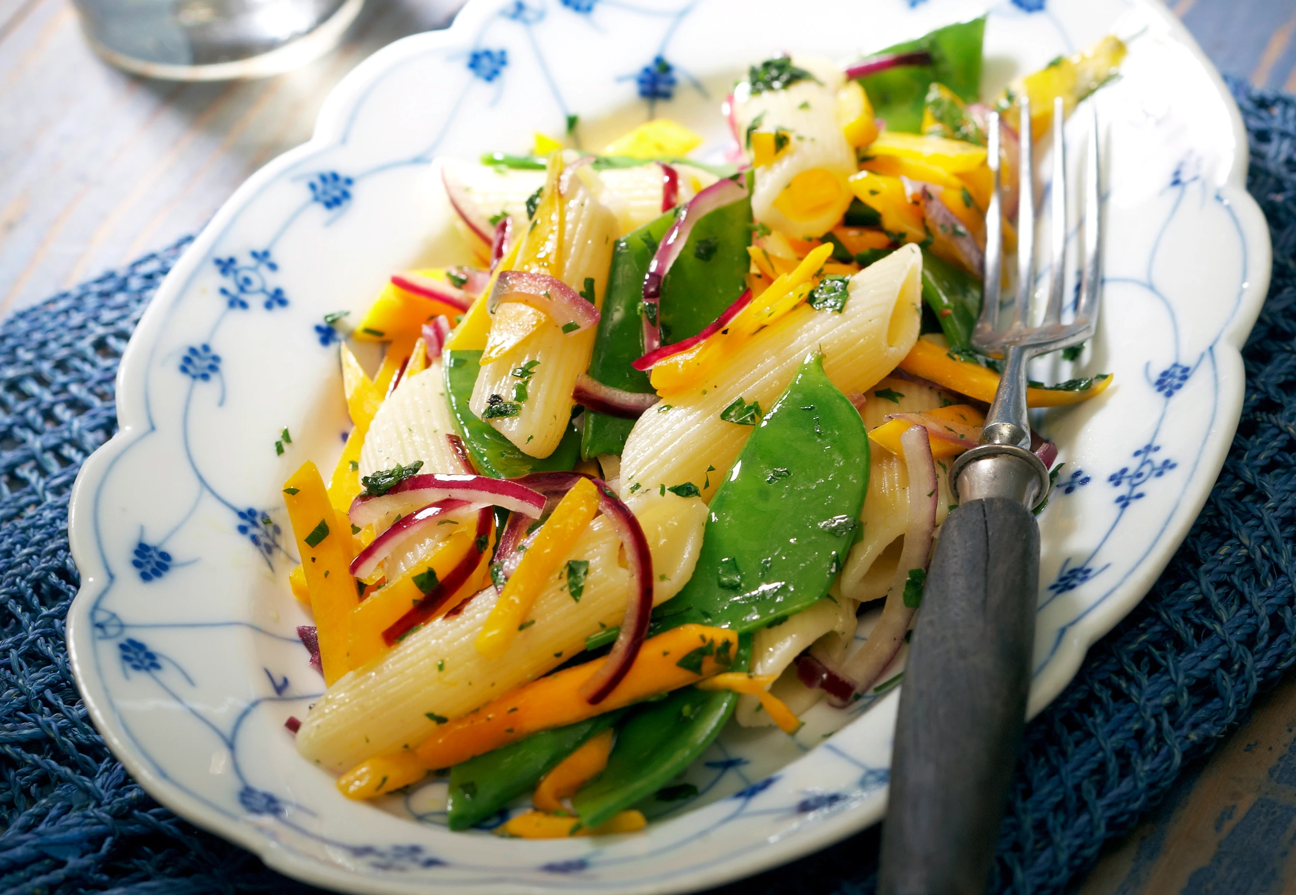 - Parallel dazu Penne in Salzwasser kochen, abseihen und abtropfen lassen. Penne unter das Gemüse rühren, mit Salz und Pfeffer abschmecken.