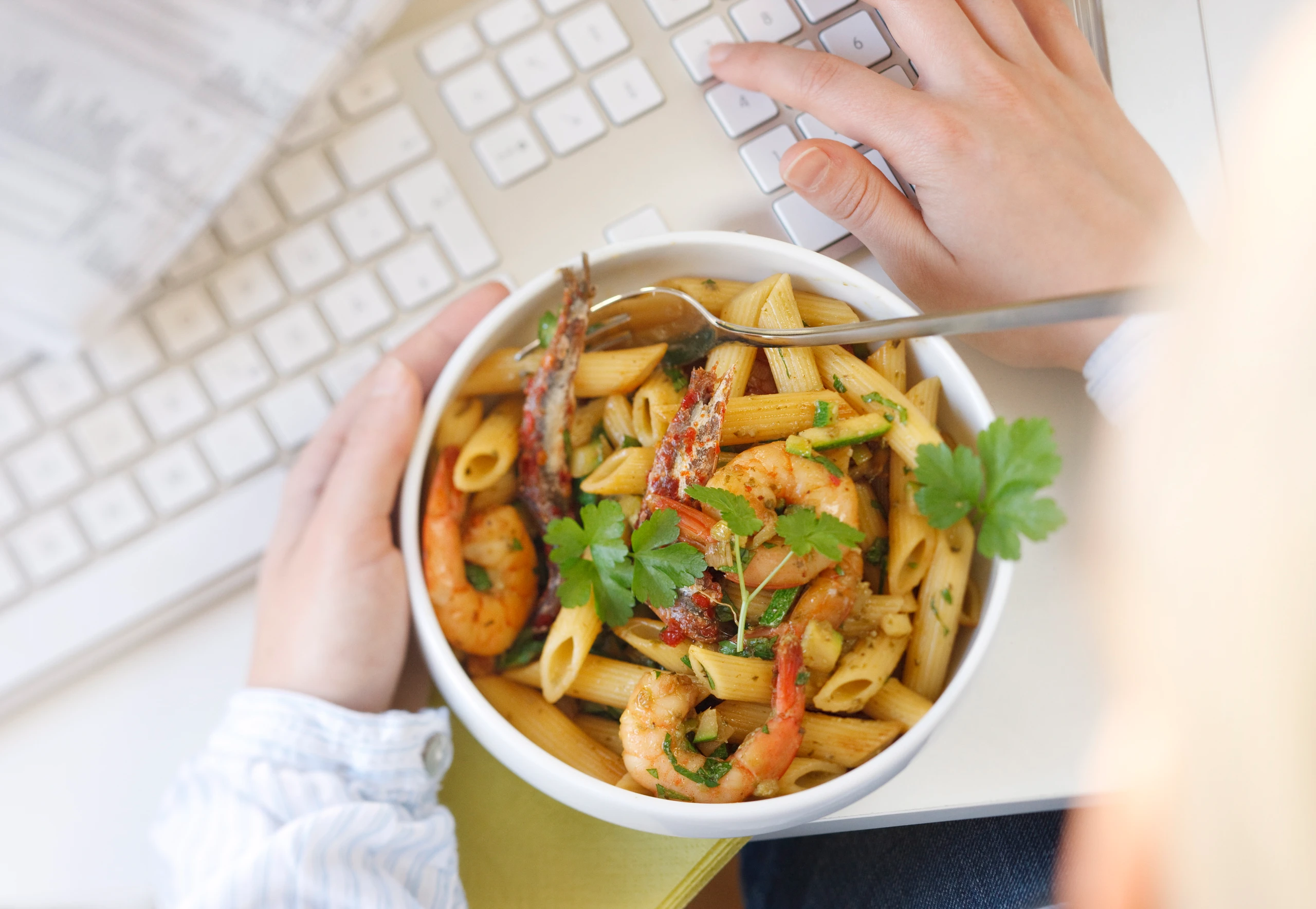 Penne mit Petersil-Zucchinipesto und Garnelen