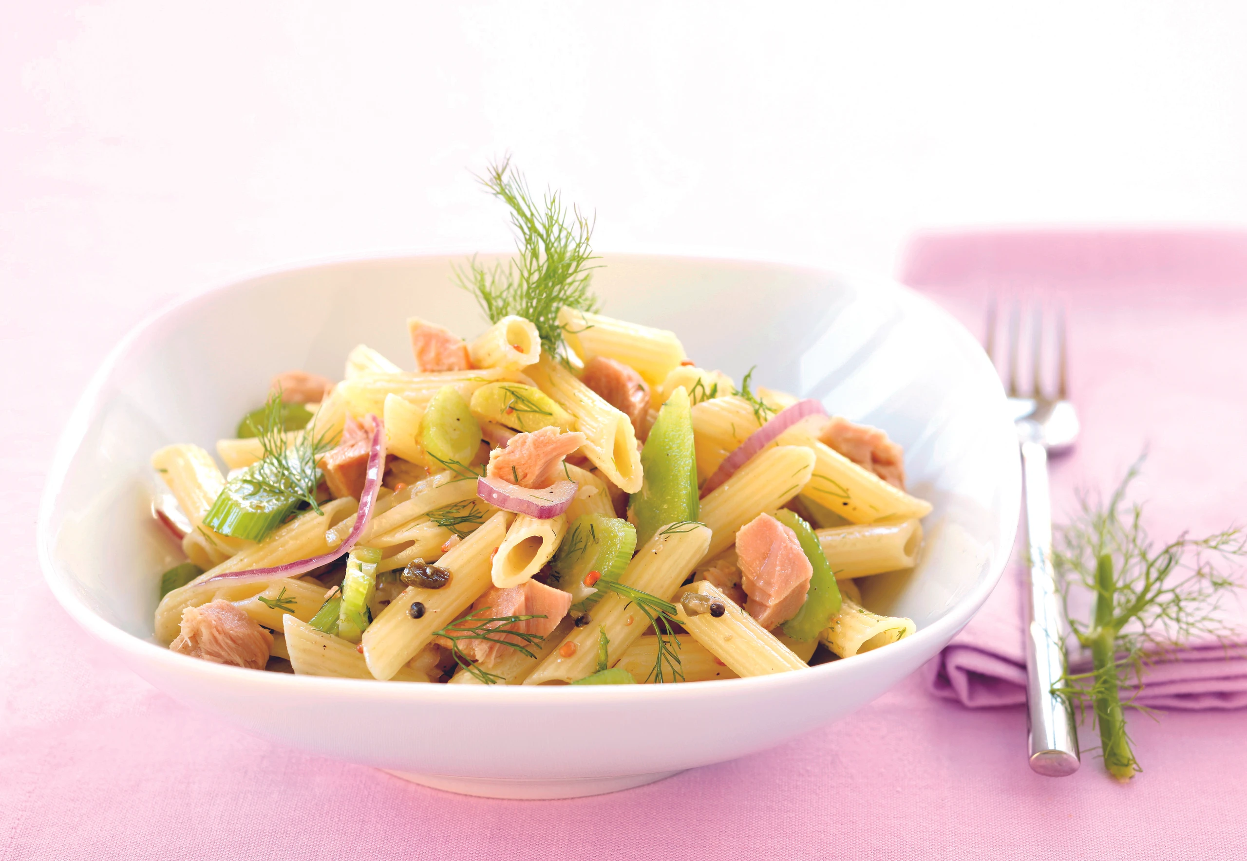 - Penne in reichlich Salzwasser bissfest kochen, abseihen, abtropfen lassen, mit Thunfisch und Fenchelmischung vermengen. Pasta mit übrigem Fenchelgrün anrichten.