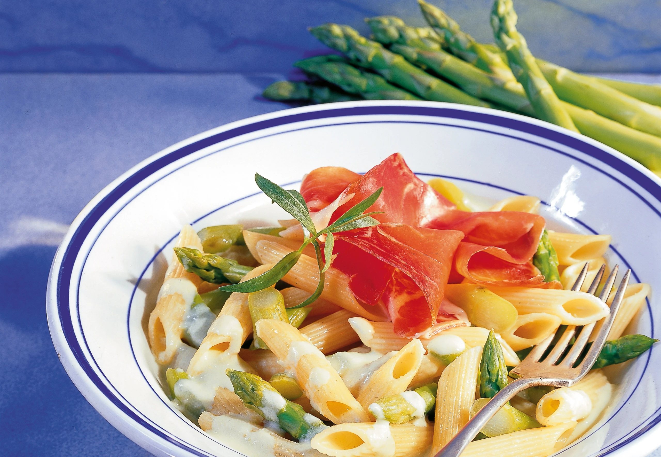 Penne mit grünem Spargel und Prosciutto
