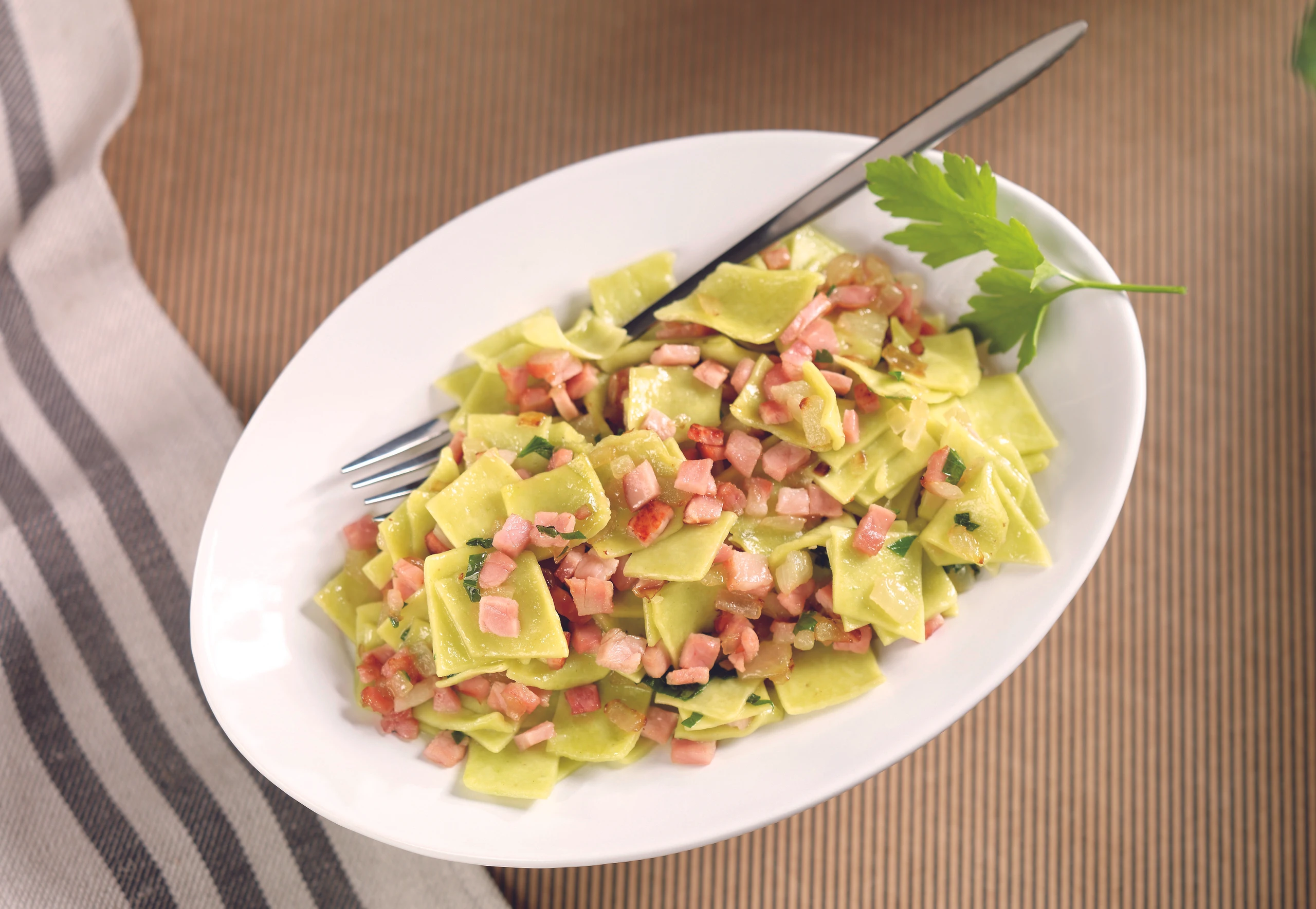 Petersilfleckerl mit Schinken