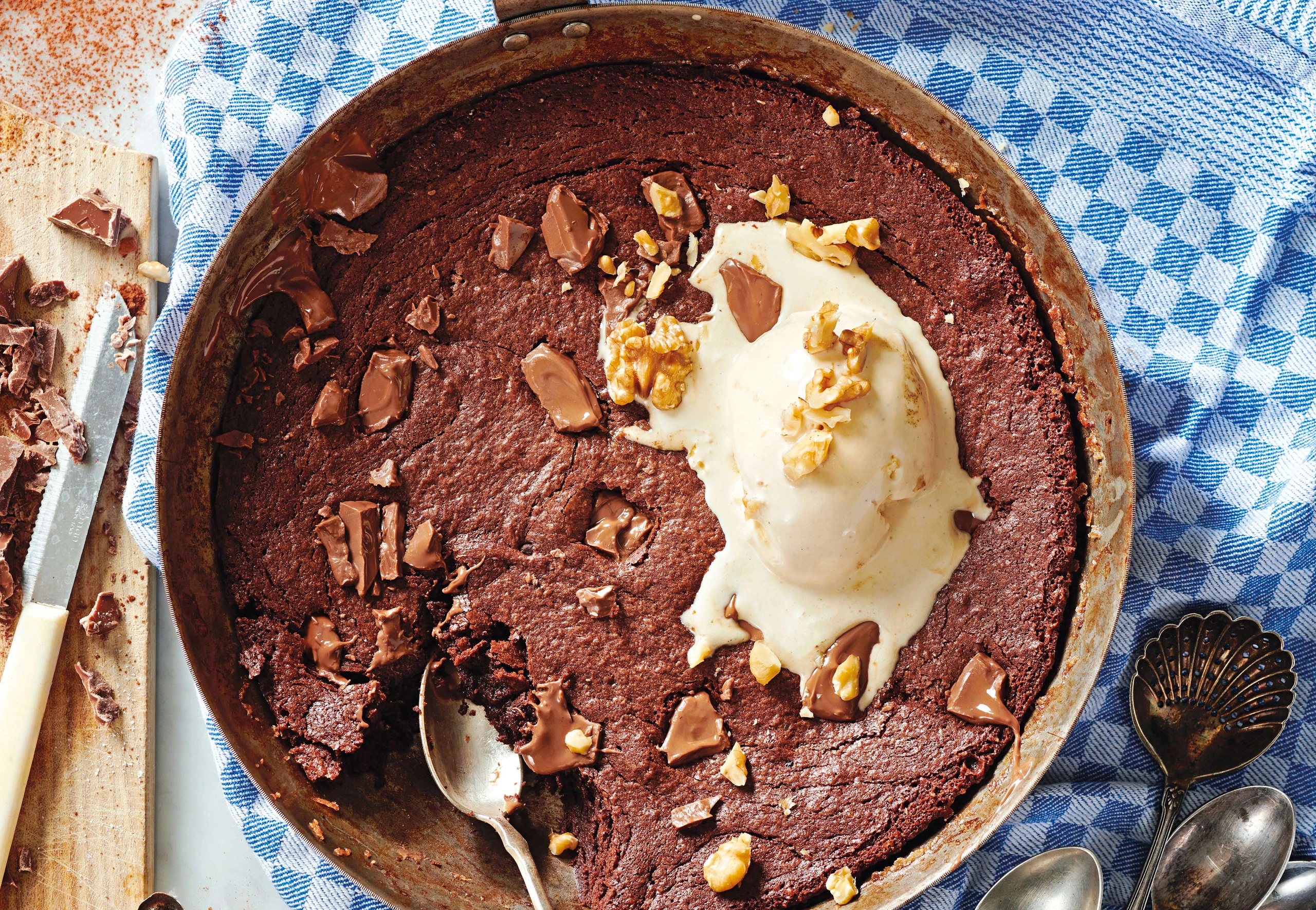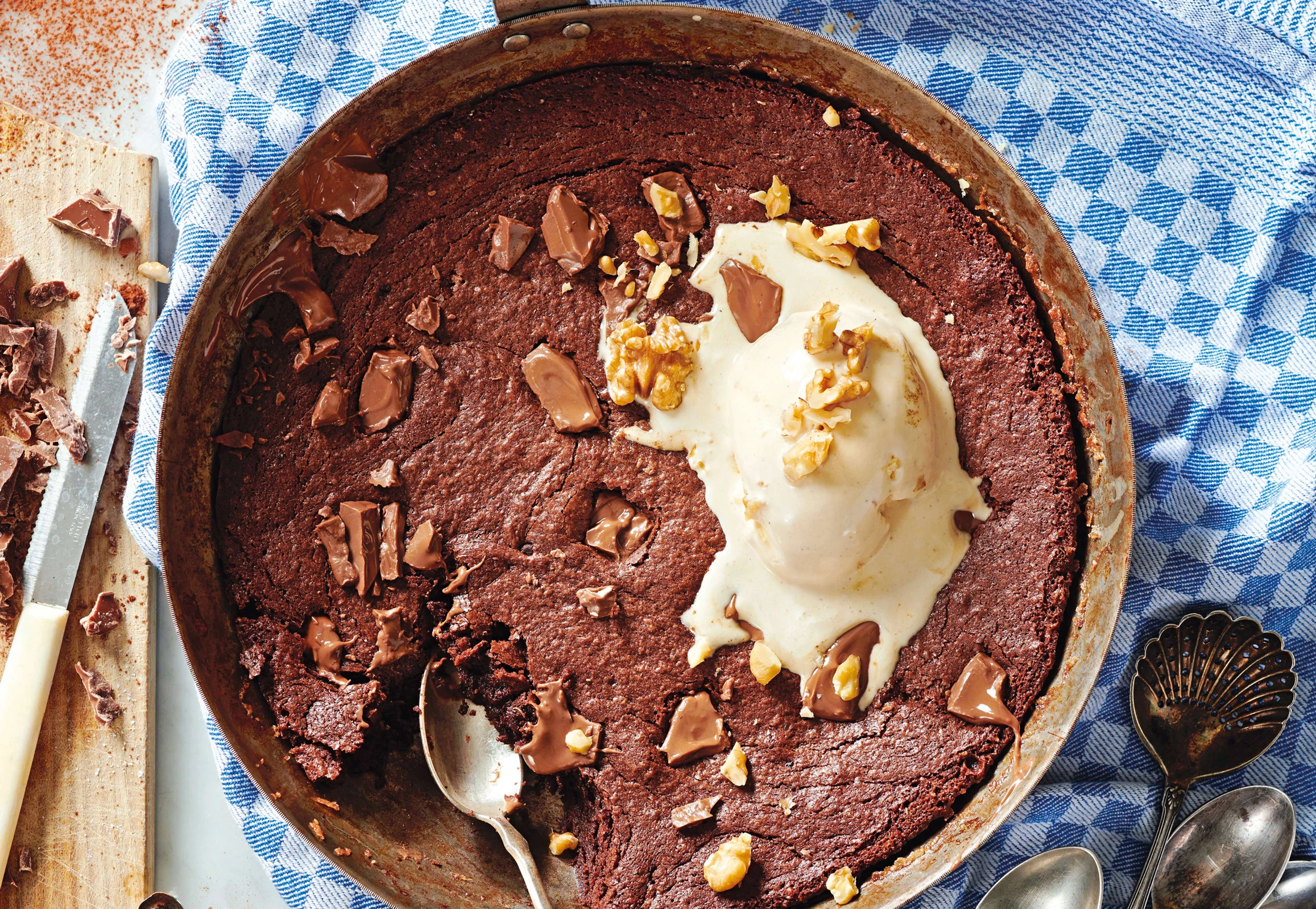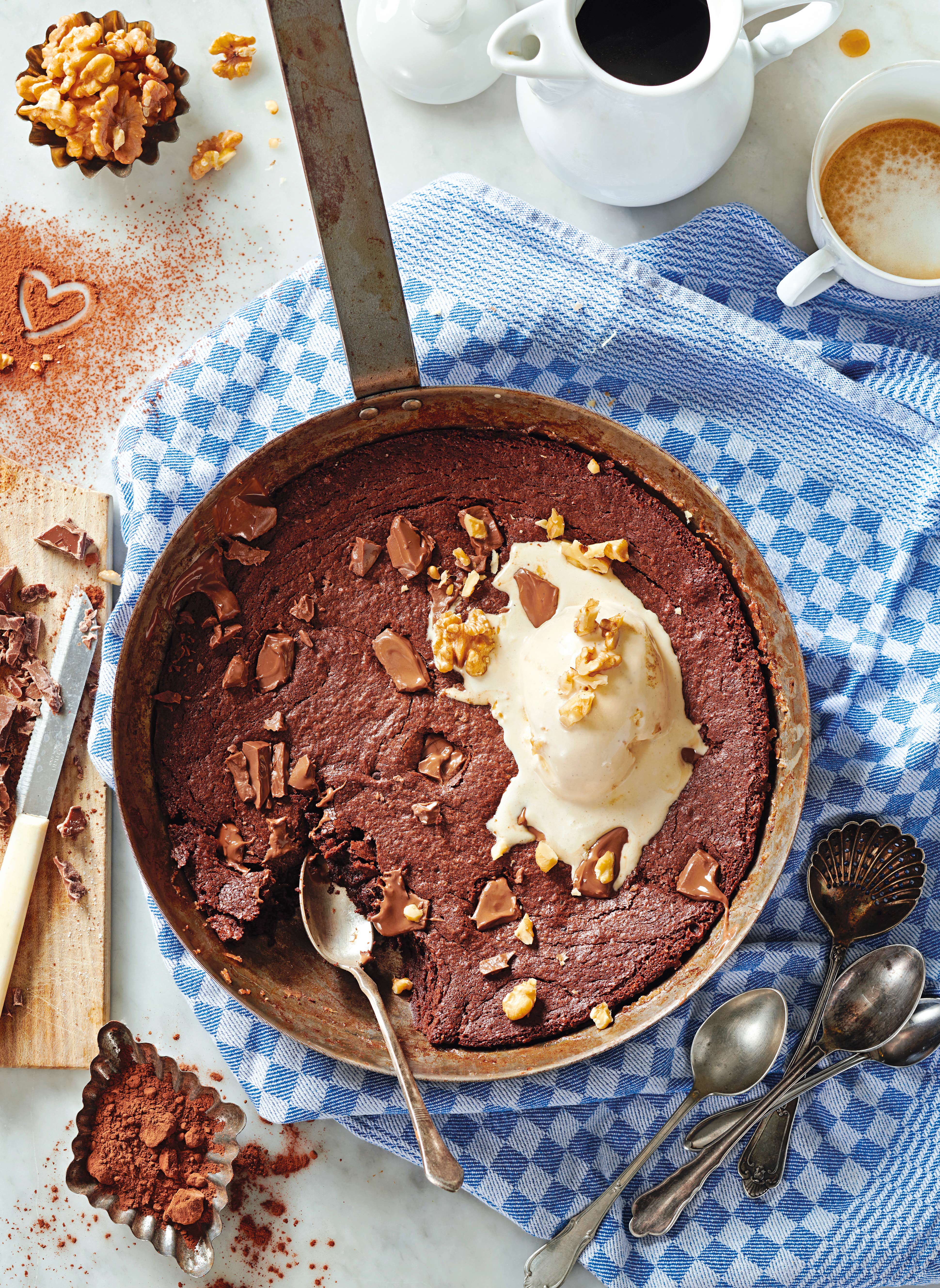 Pfannen-Brownie mit Nüssen