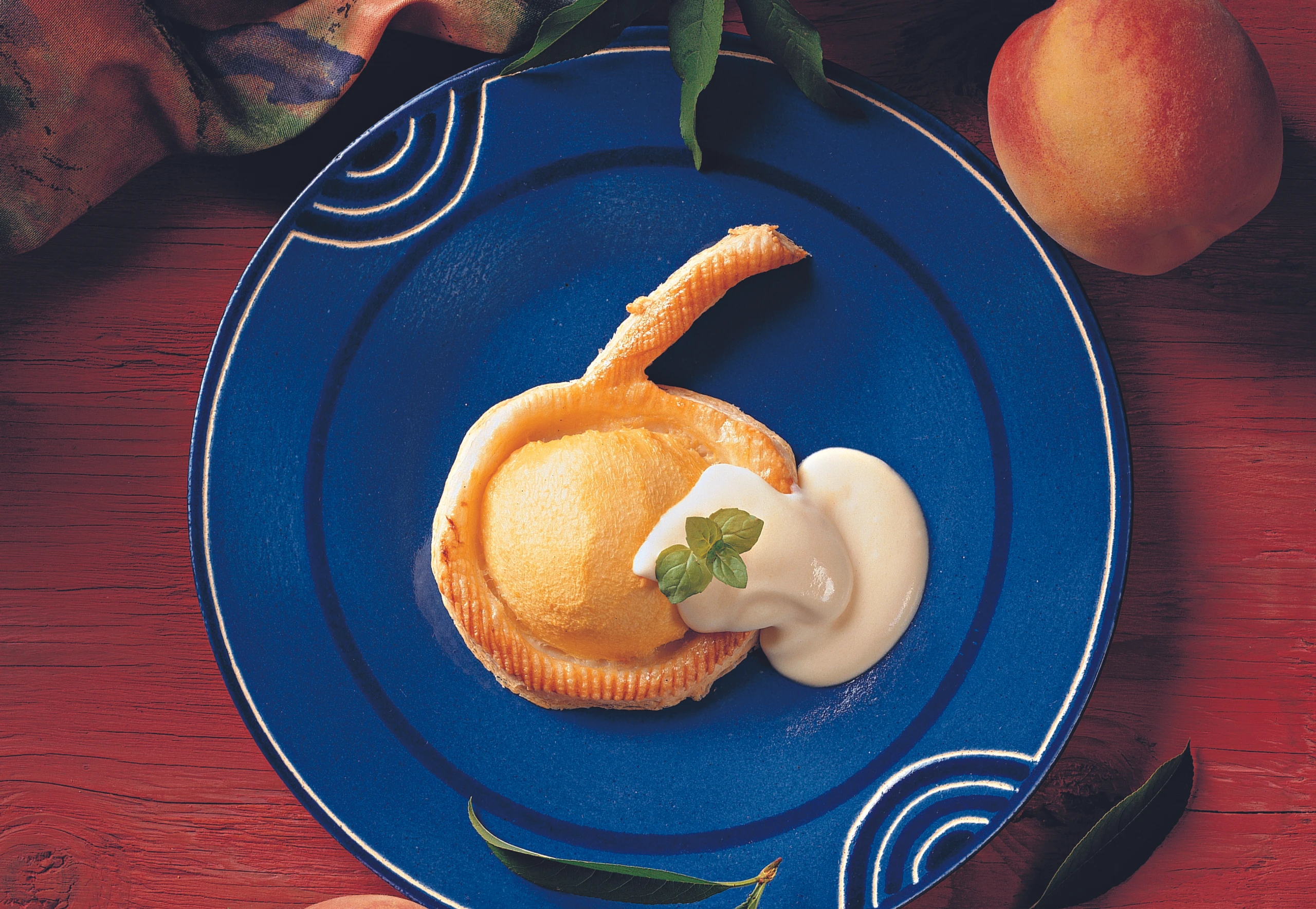 Pfirsich auf Blätterteig mit Vanilleschaum