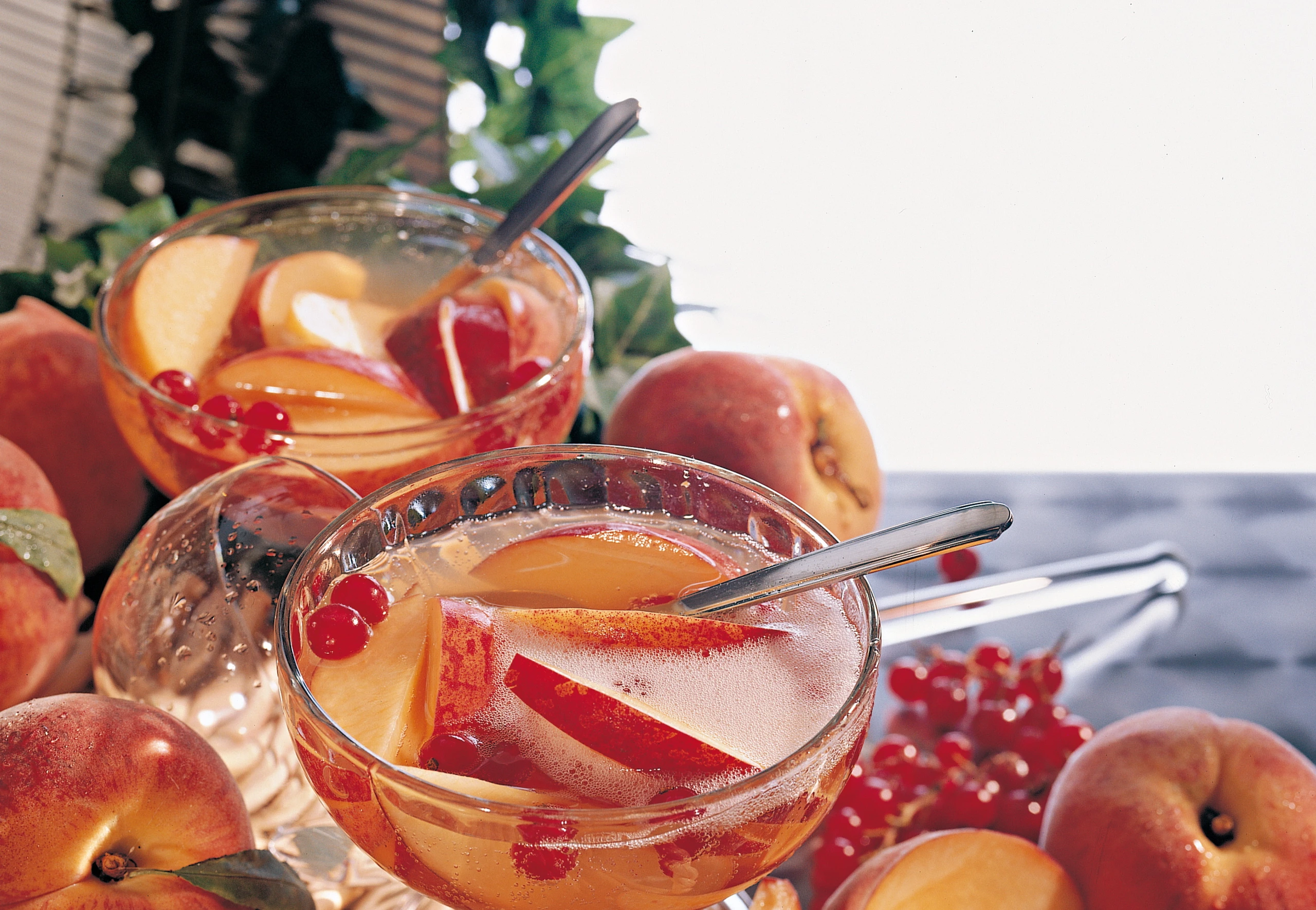 Bowle vor dem Servieren mit eiskaltem Wein und Sekt aufgießen.