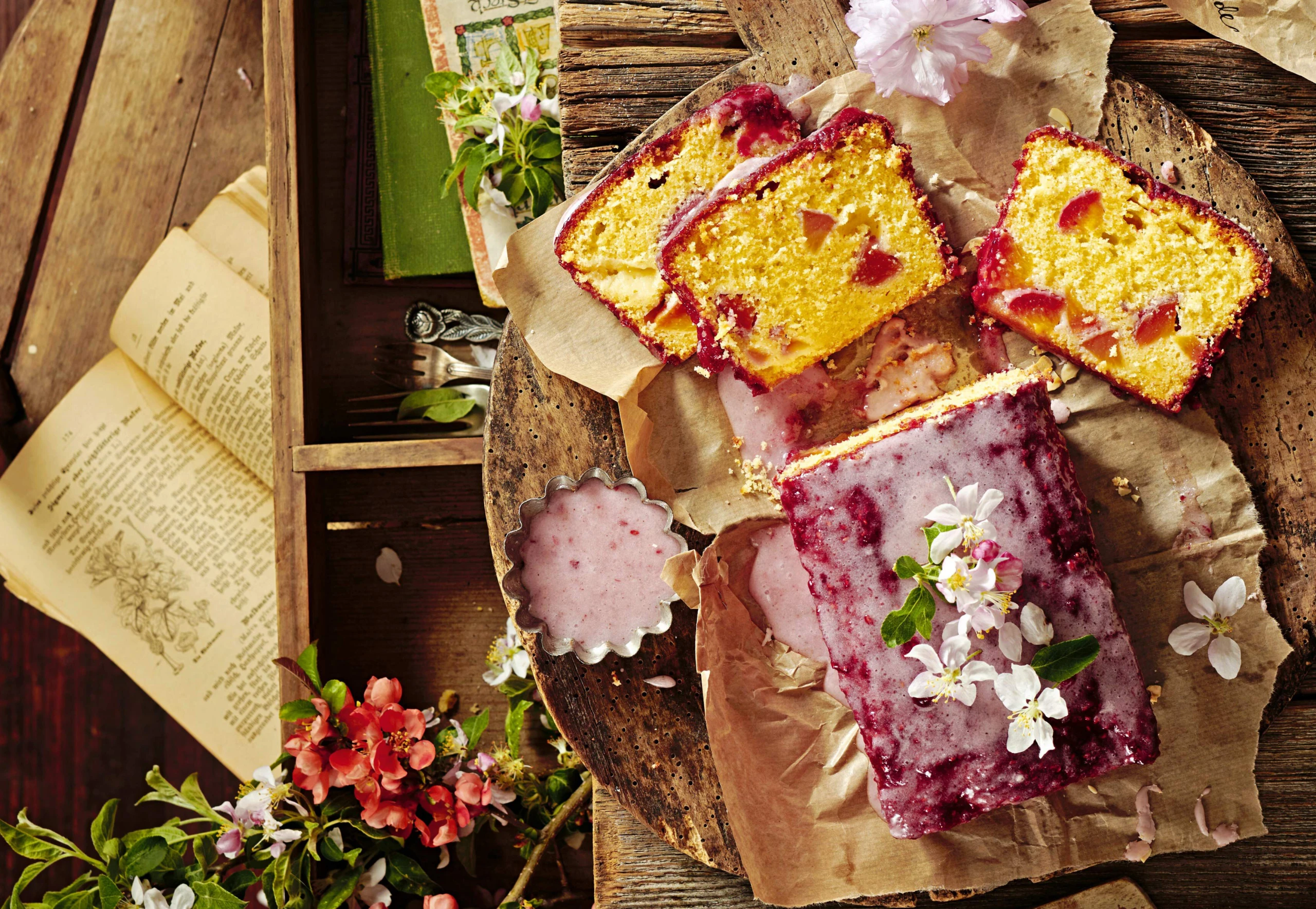 Für die Glasur die Zutaten glatt rühren und den Kuchen damit beträufeln. Kuchen eventuell mit essbaren Blüten verzieren.
