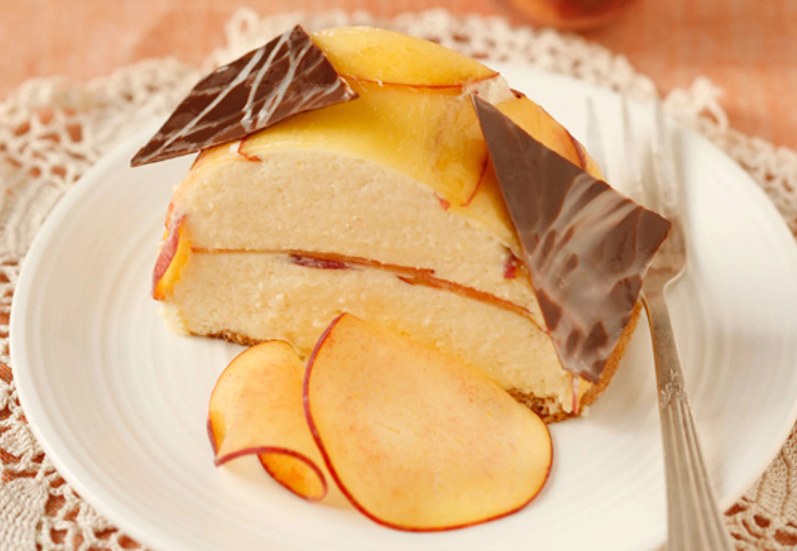 - Die Hälfte von der Mousse in der Form verstreichen und mit den übrigen Pfirsichscheiben belegen. Restliche Mousse darauf verstreichen, mit Biskotten belegen und zugedeckt für 4 Stunden kühl stellen.