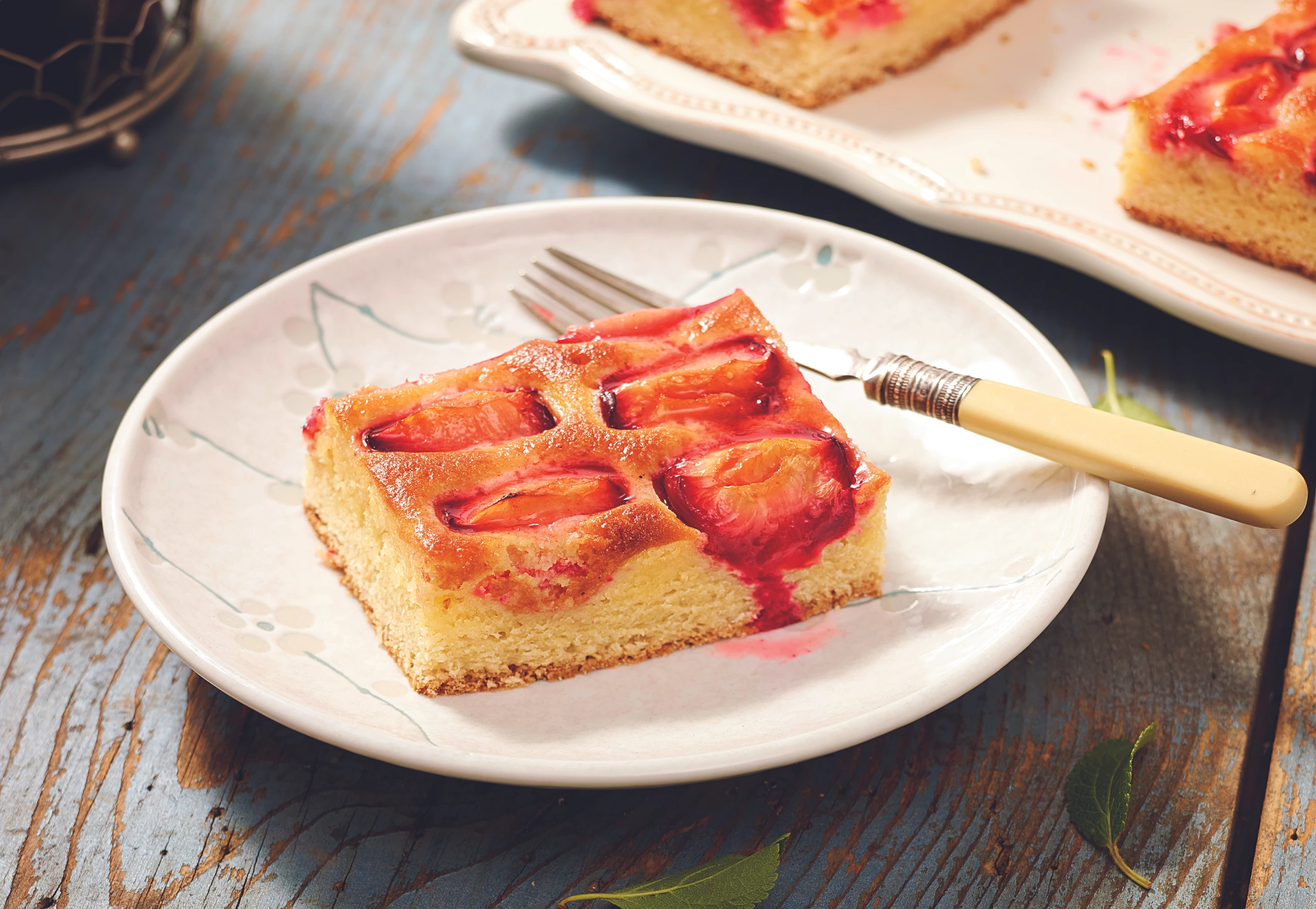 Teig auf einer bemehlten Arbeitsfläche ausrollen (50 x 40 cm) und auf das Blech legen. Marzipanmasse darauf verstreichen und mit den Pflaumen belegen. Kuchen im Rohr (mittlere Schiene) ca. 25 Minuten backen. Herausnehmen und auskühlen lassen.