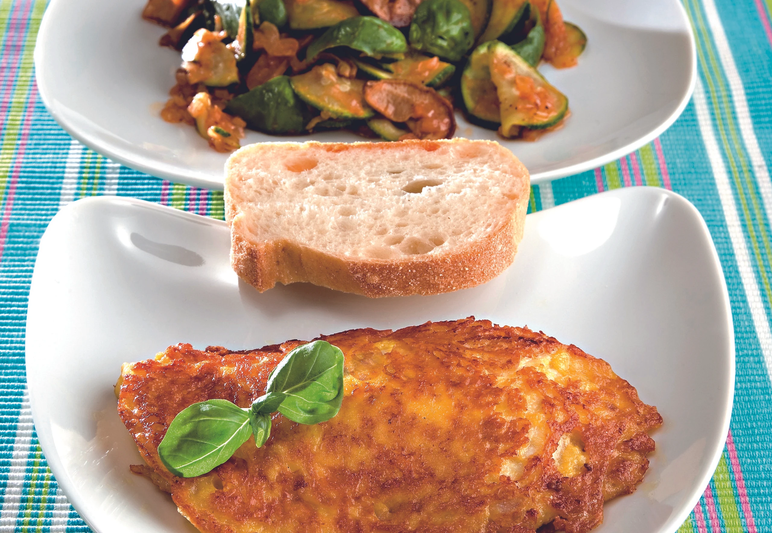 Piccata milanese vom Wels mit Zucchini-Pilz-Gemüse