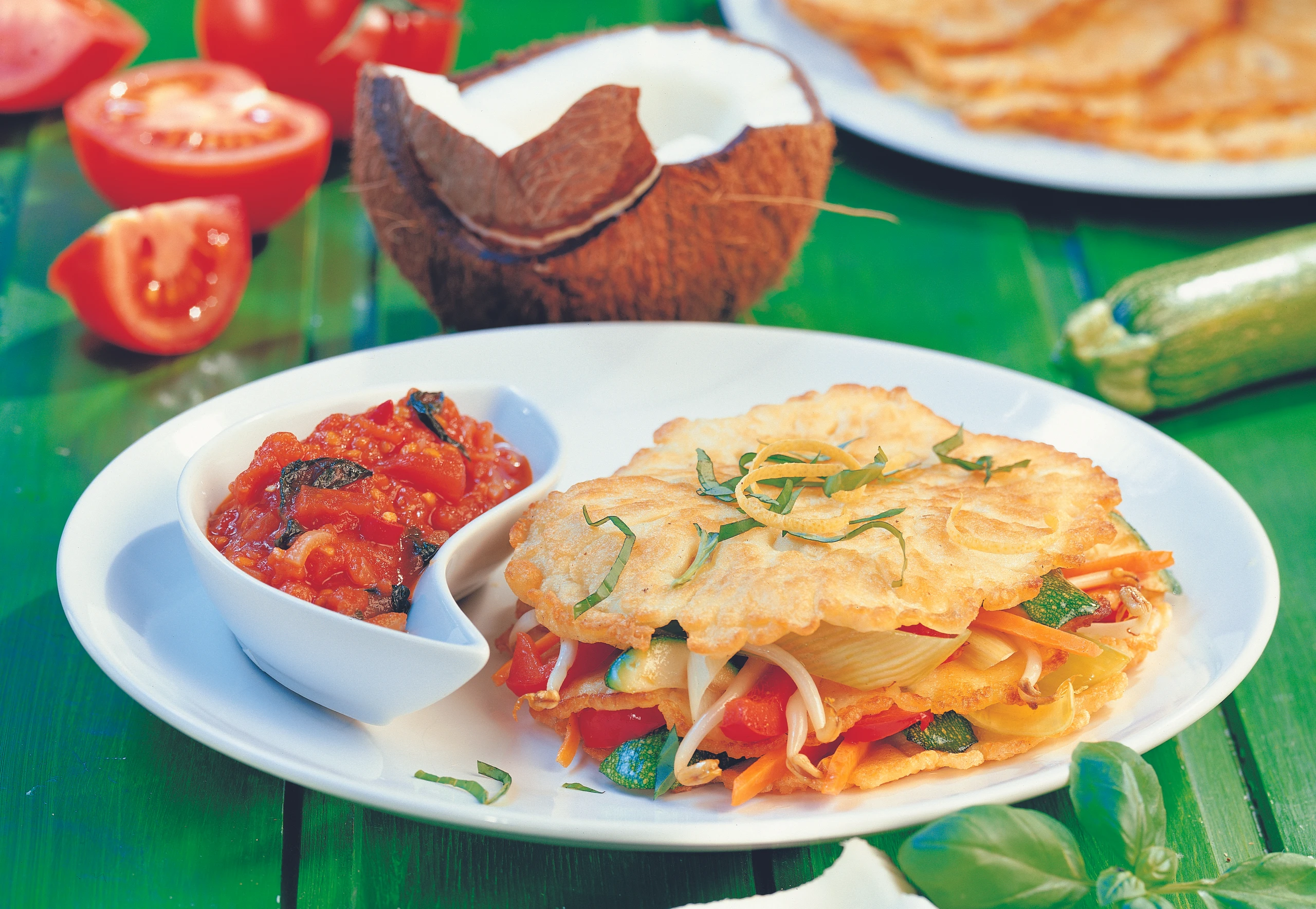 Thai-Kokoscrêpes mit Asia-Gemüse